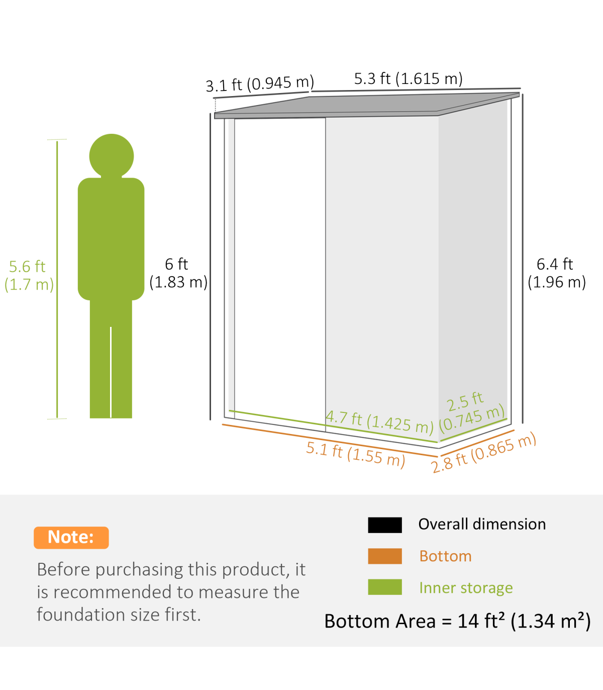 ● Bottom Size: 155W x 86.5Dcm (1.34m²)