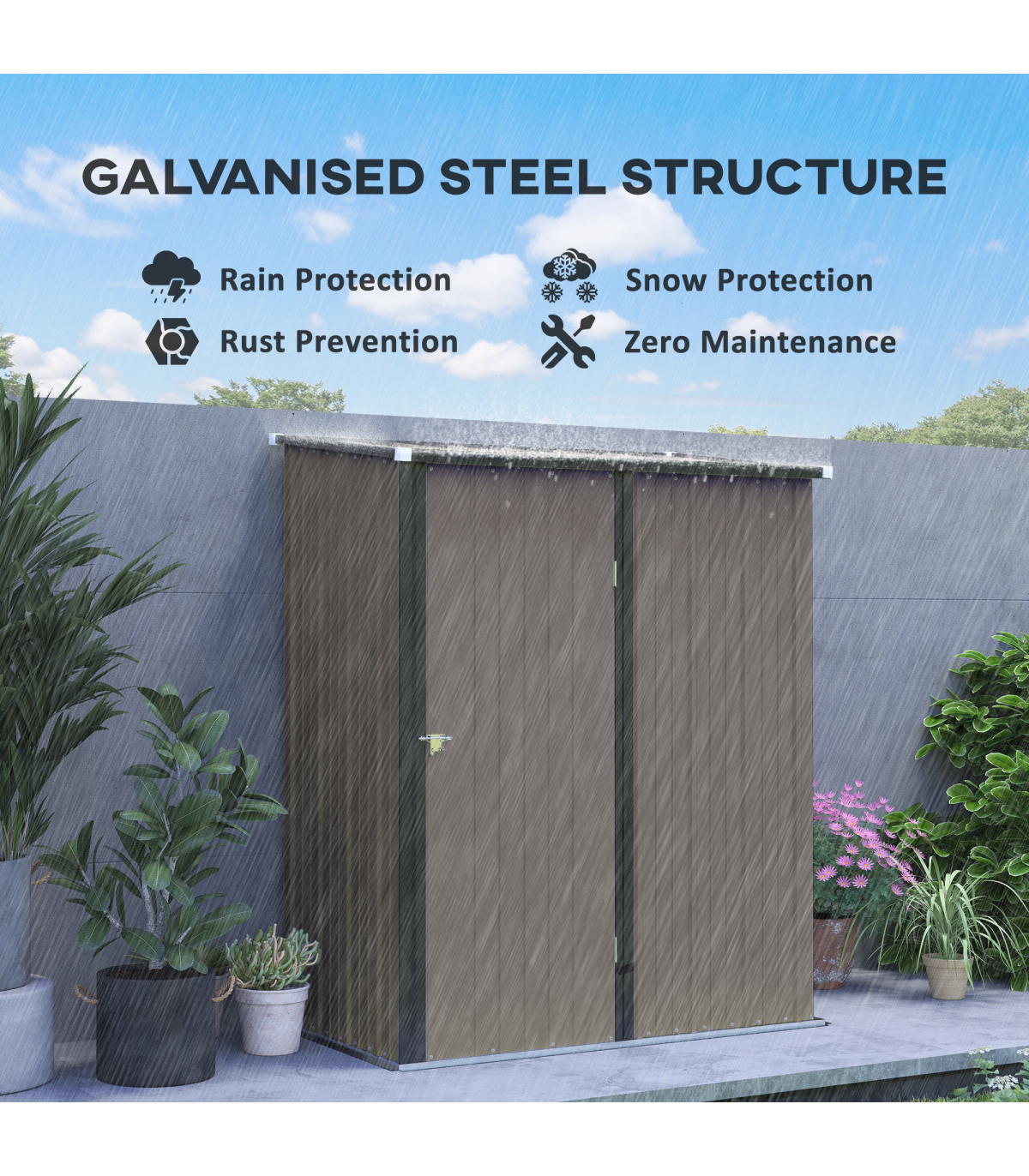 ● Corrugated steel structure with galvanised finish for a strong shell
