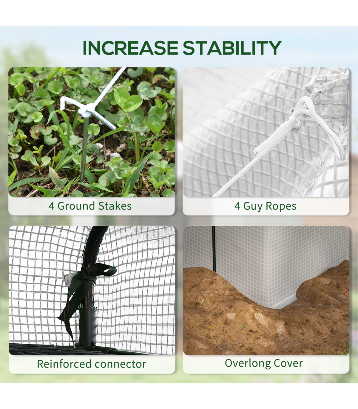 ● 4 ground stakes and 4 guy ropes included to pin greenhouse to ground