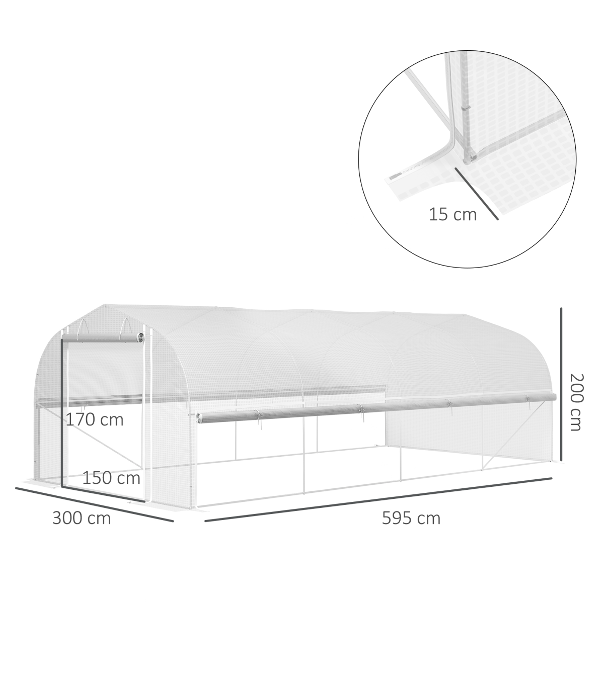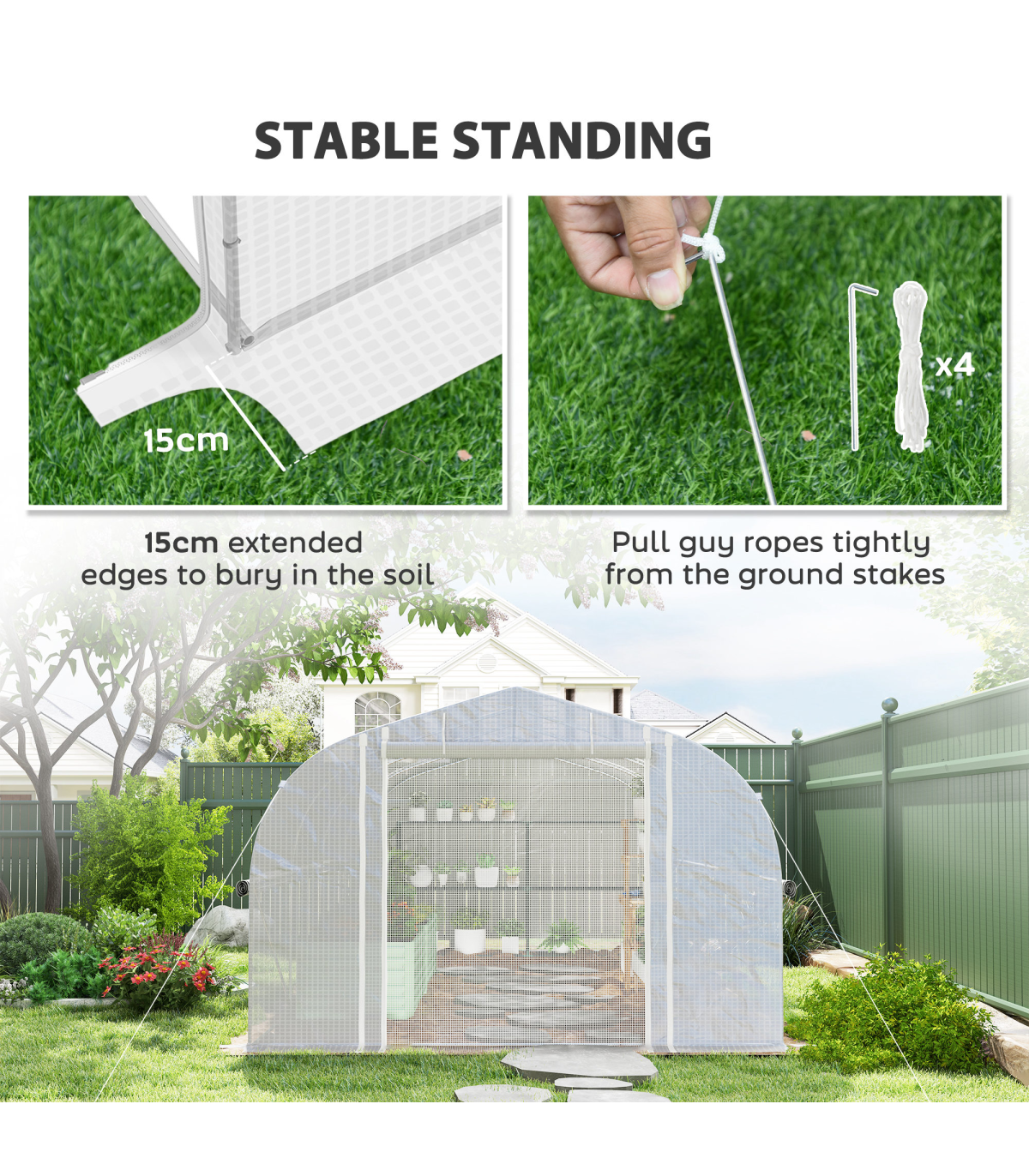 ● Long edges to bury into soil, with guy ropes and ground stakes also included