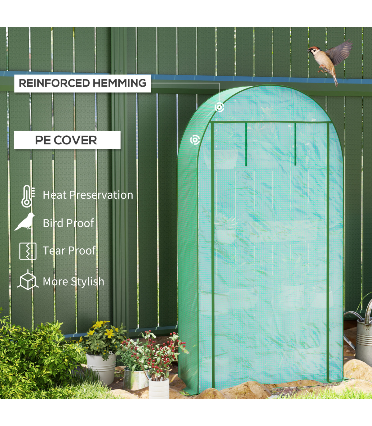 ● 140g/m² PE cover shields plants from UV, enhances longevity