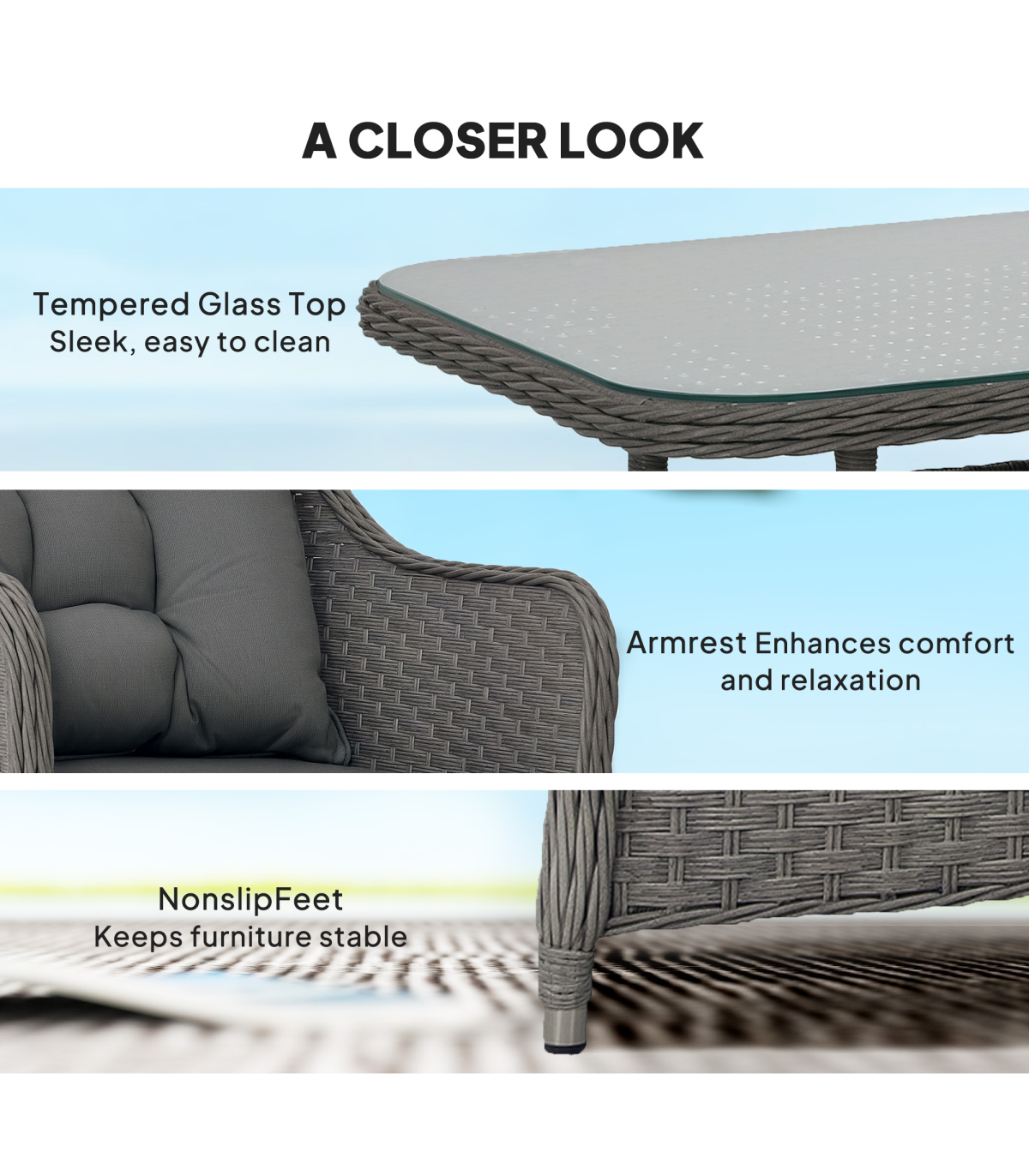 ● Aluminium frame for a strong core, wrapped in durable plastic rattan