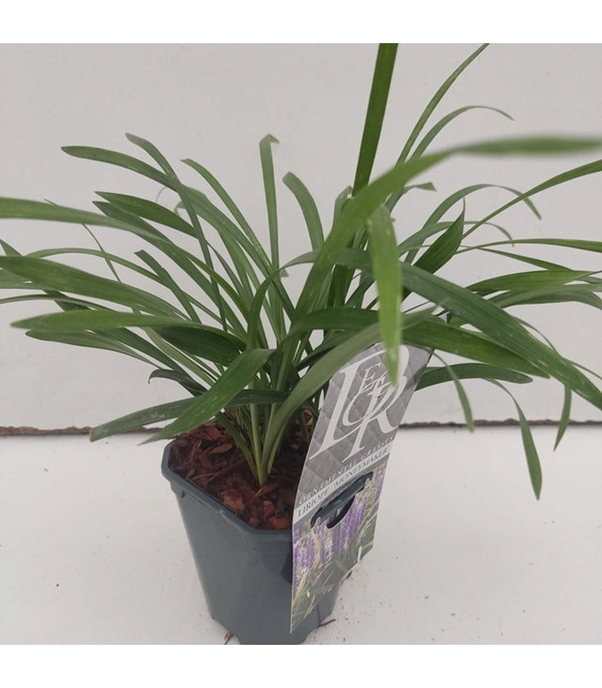 The Liriope muscari 'Moneymaker' is a robust and versatile evergreen perennial, valued for its striking grass-like foliage and vibrant purple flowers. Ideal for adding texture and color to gardens, it is a reliable choice for ground cover, borders, or shaded areas.
