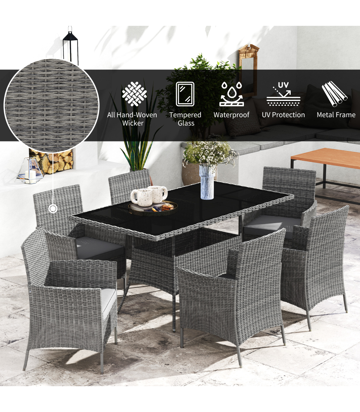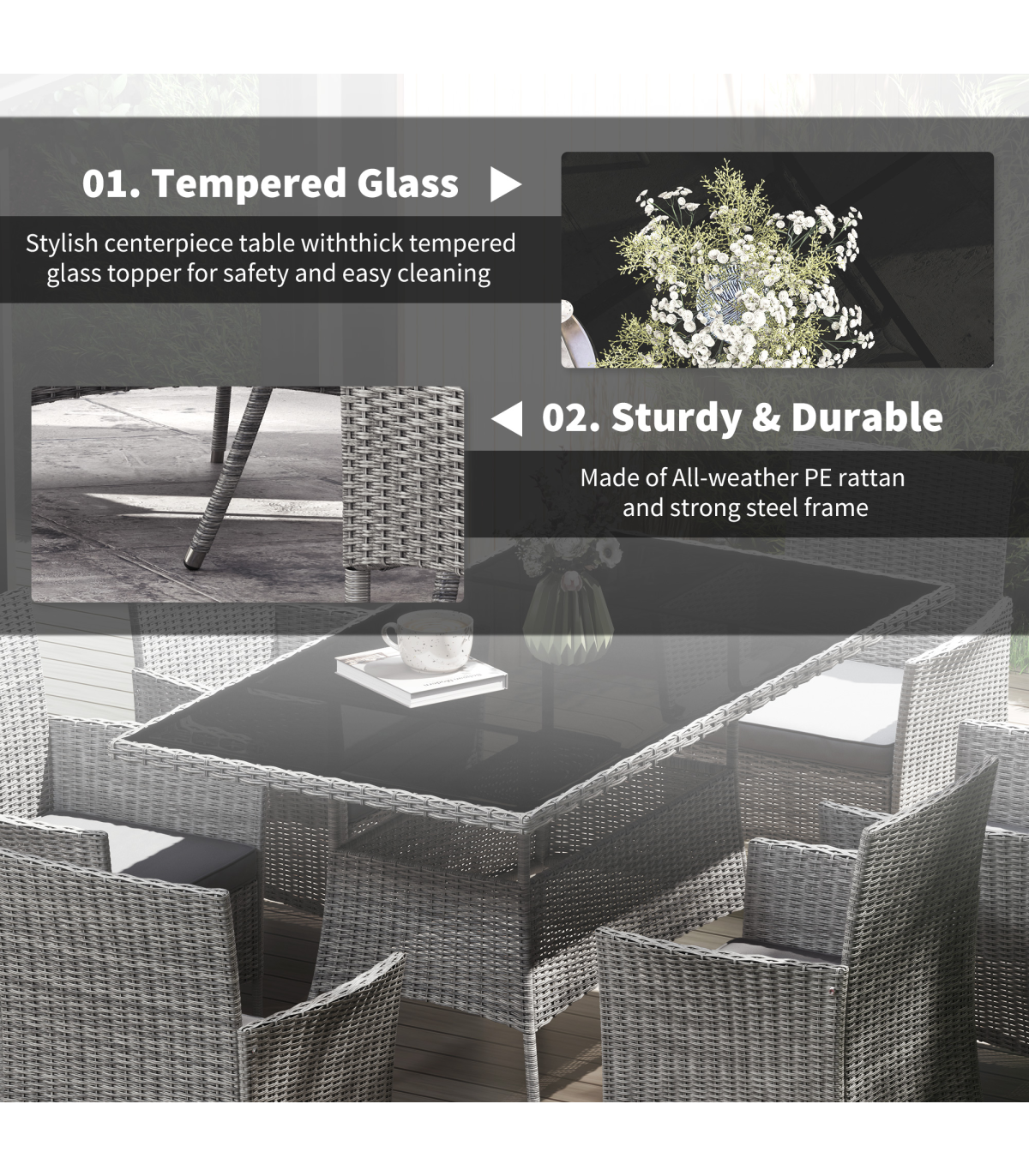 ● Constructed of quality metal frame and PE rattan in strong build for long-lasting use