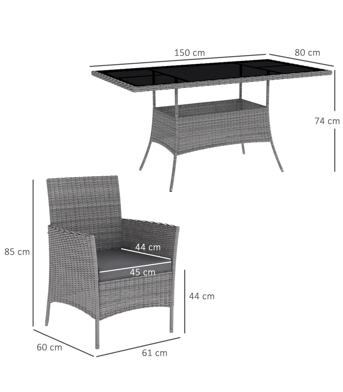 ● Table Dimension: 150L x 80W x 74H cm