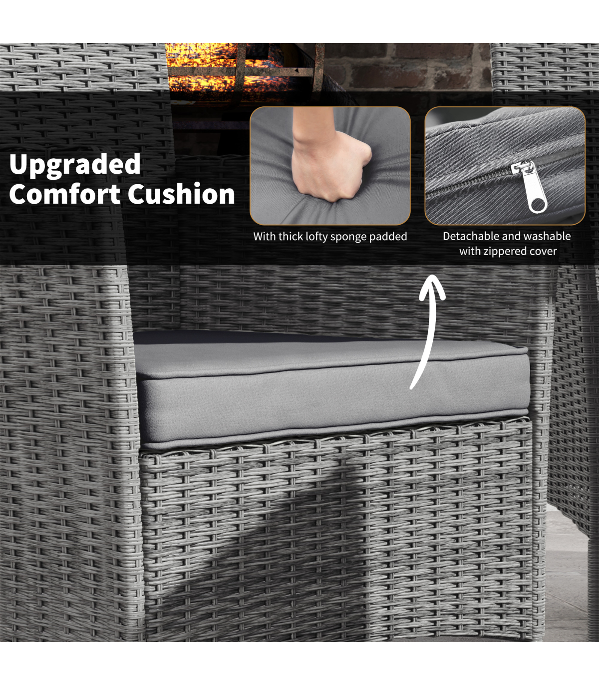 ● Detachable cushion cover made of 180g/㎡ polyester has zipper for smooth opening and closing