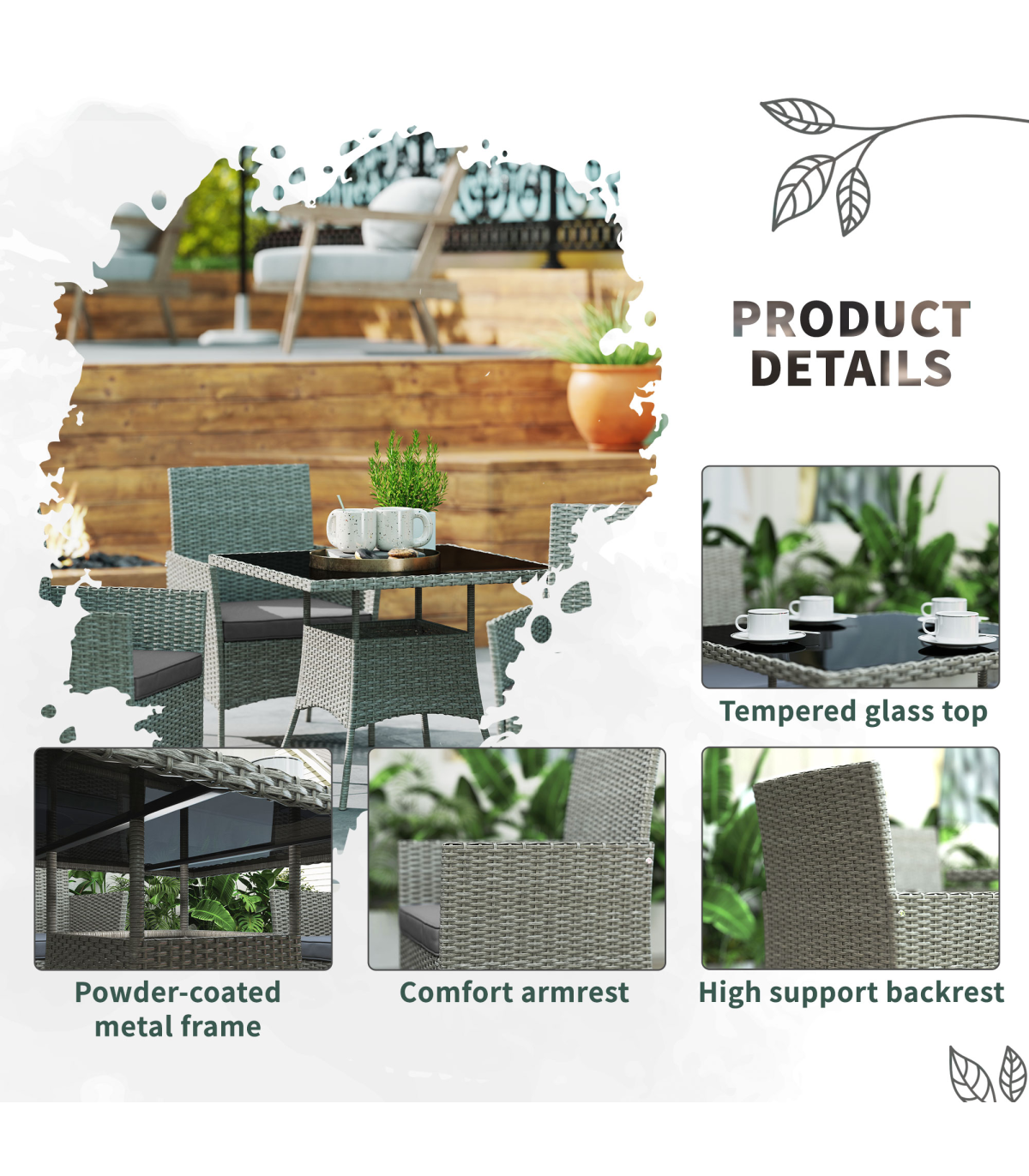 ● Material: Steel, PE Rattan, Tempered Glass, Polyester