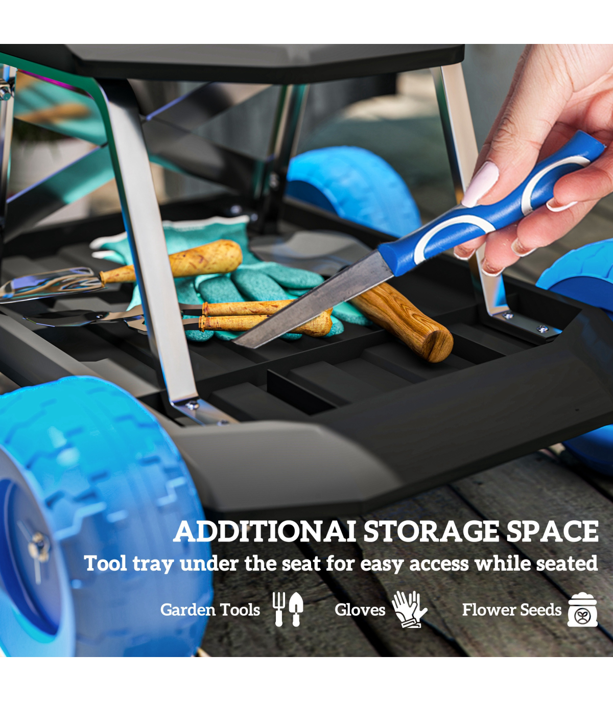 ● Tool tray under seat, easy access while seated
