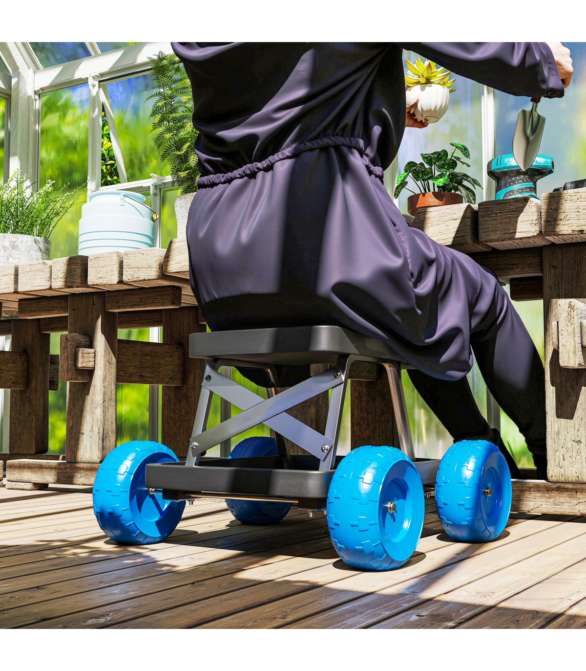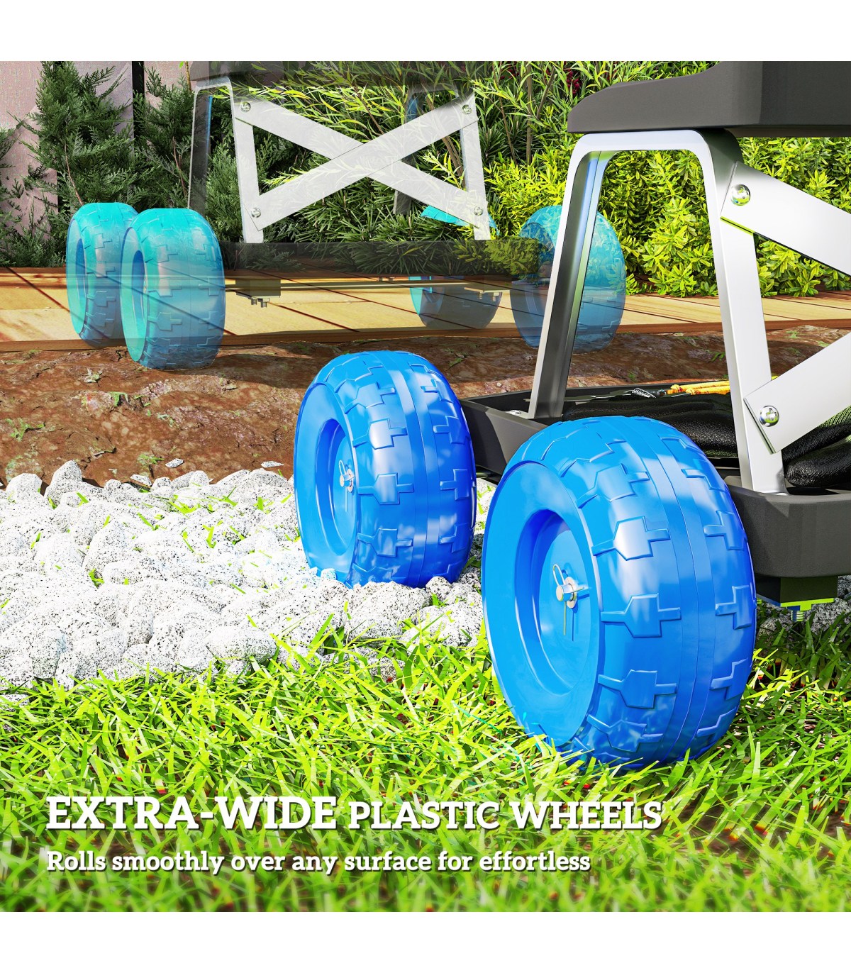 ● Extra-wide plastic wheels for smooth, effortless mobility