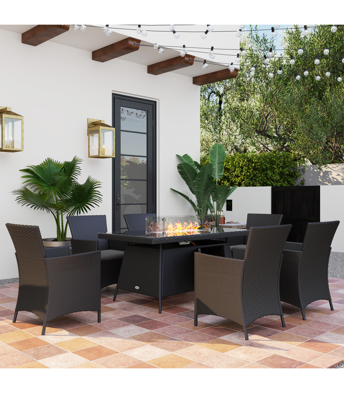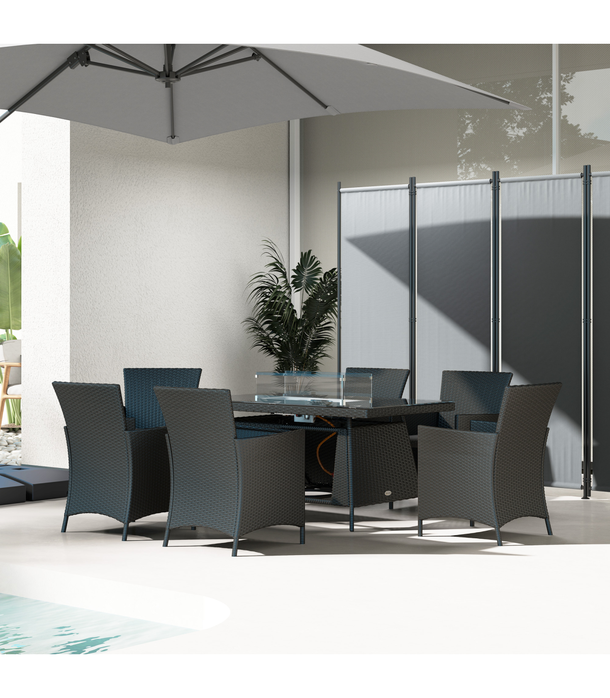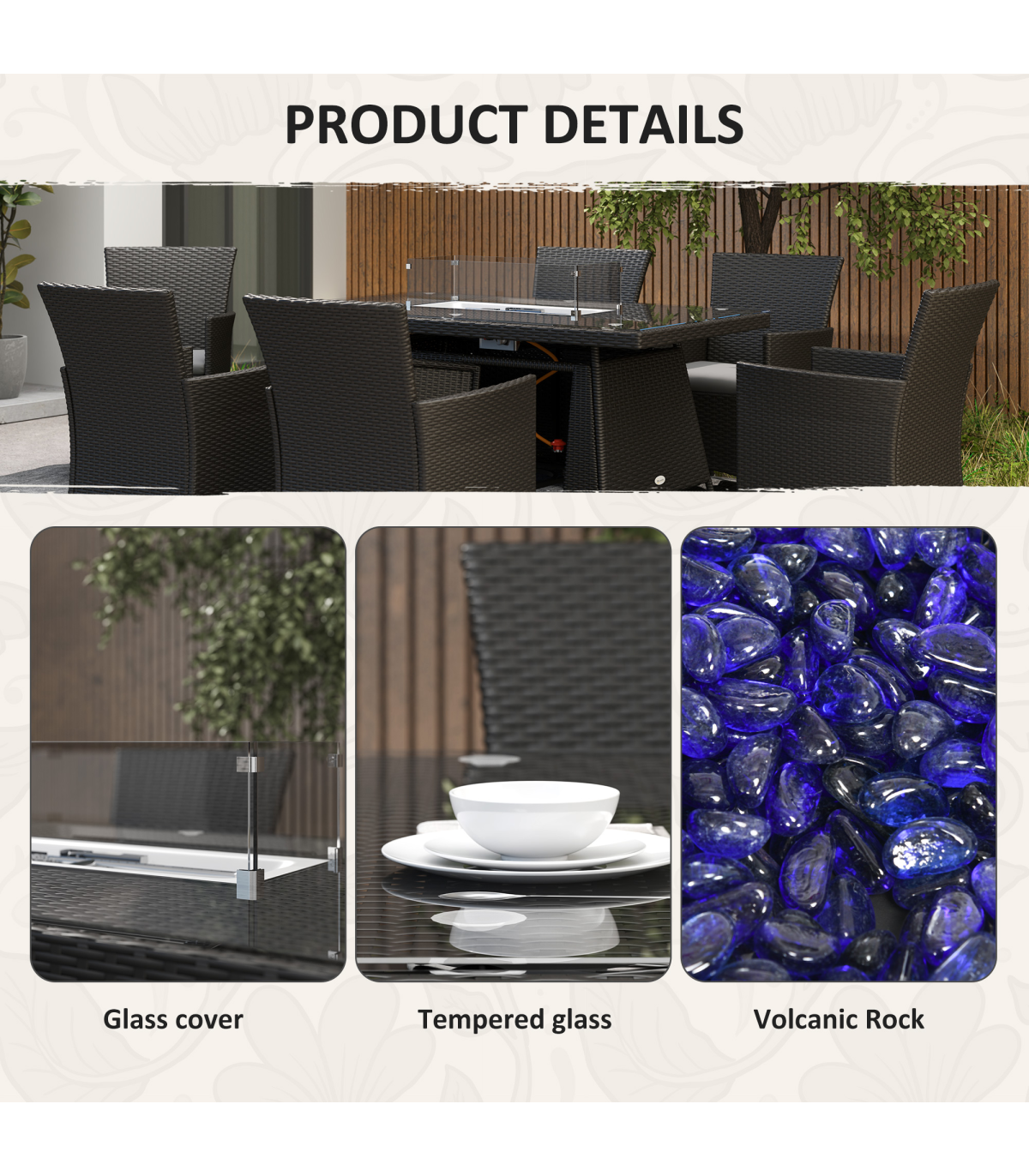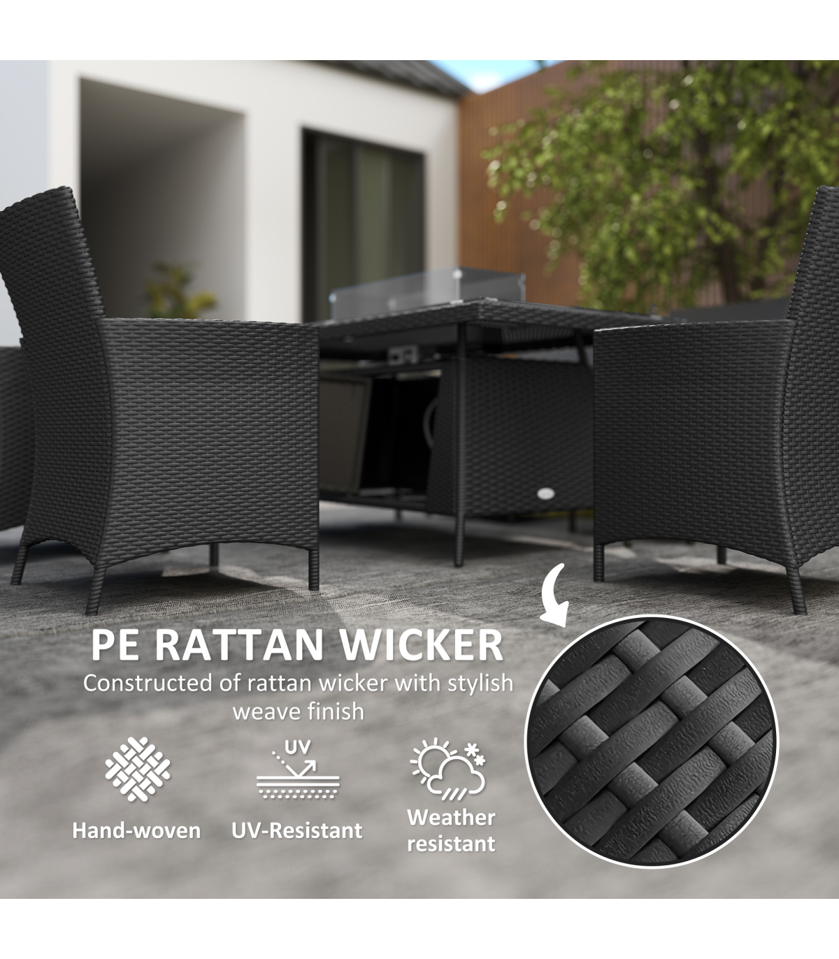 ● Material: Galvanised Steel, PE Rattan, Tempered Glass, Polyester