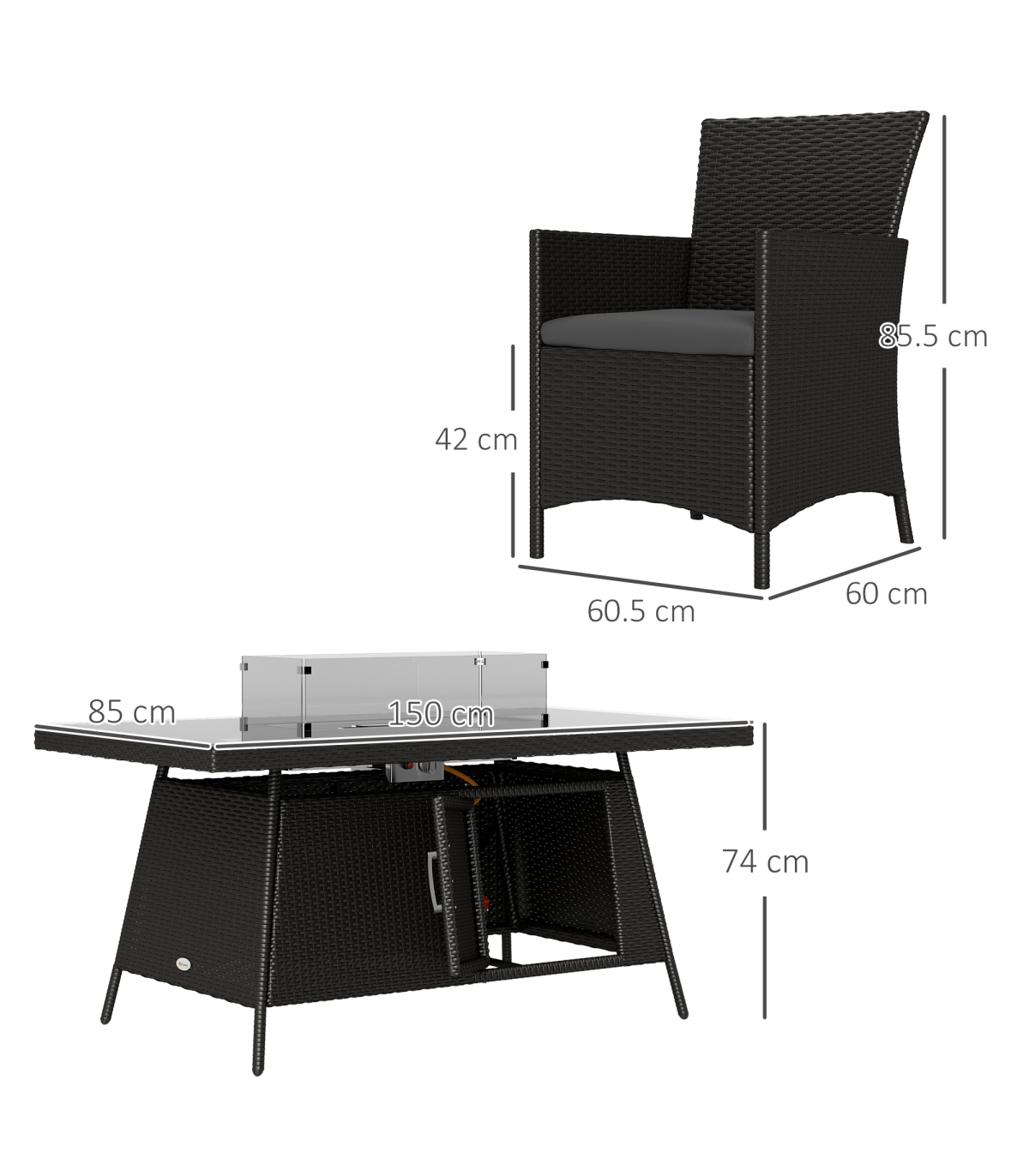 ● Fire Pit Table Dimension: 74H x 150L x 85W cm
