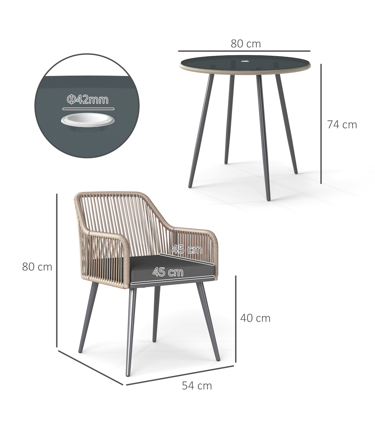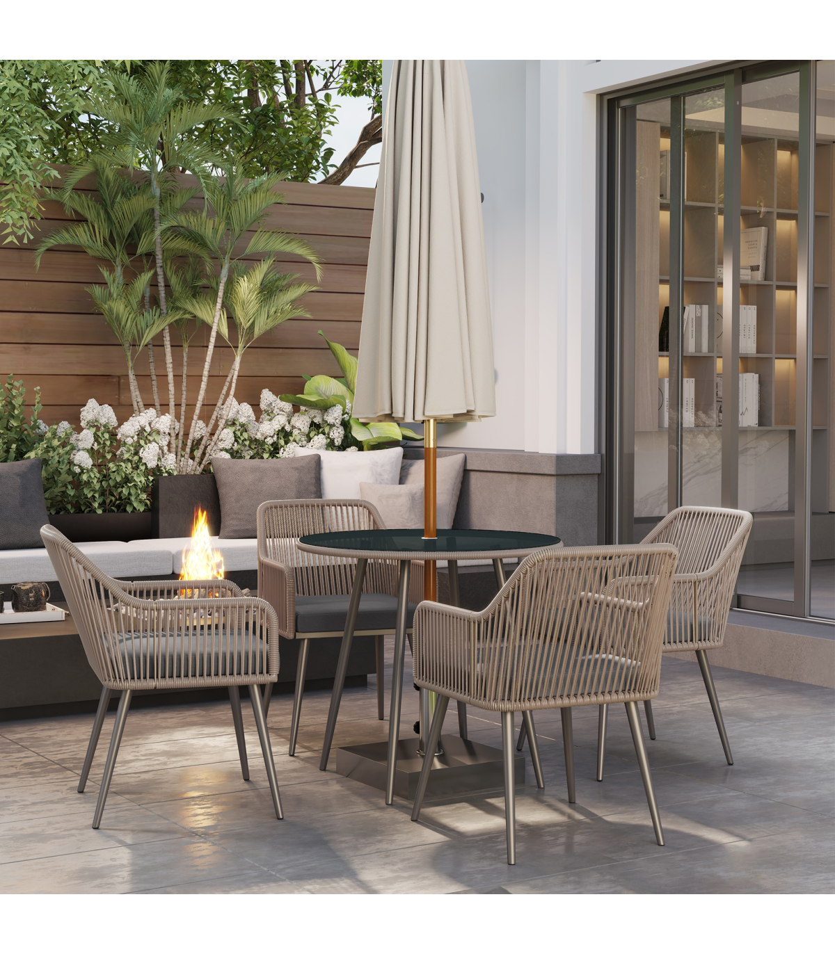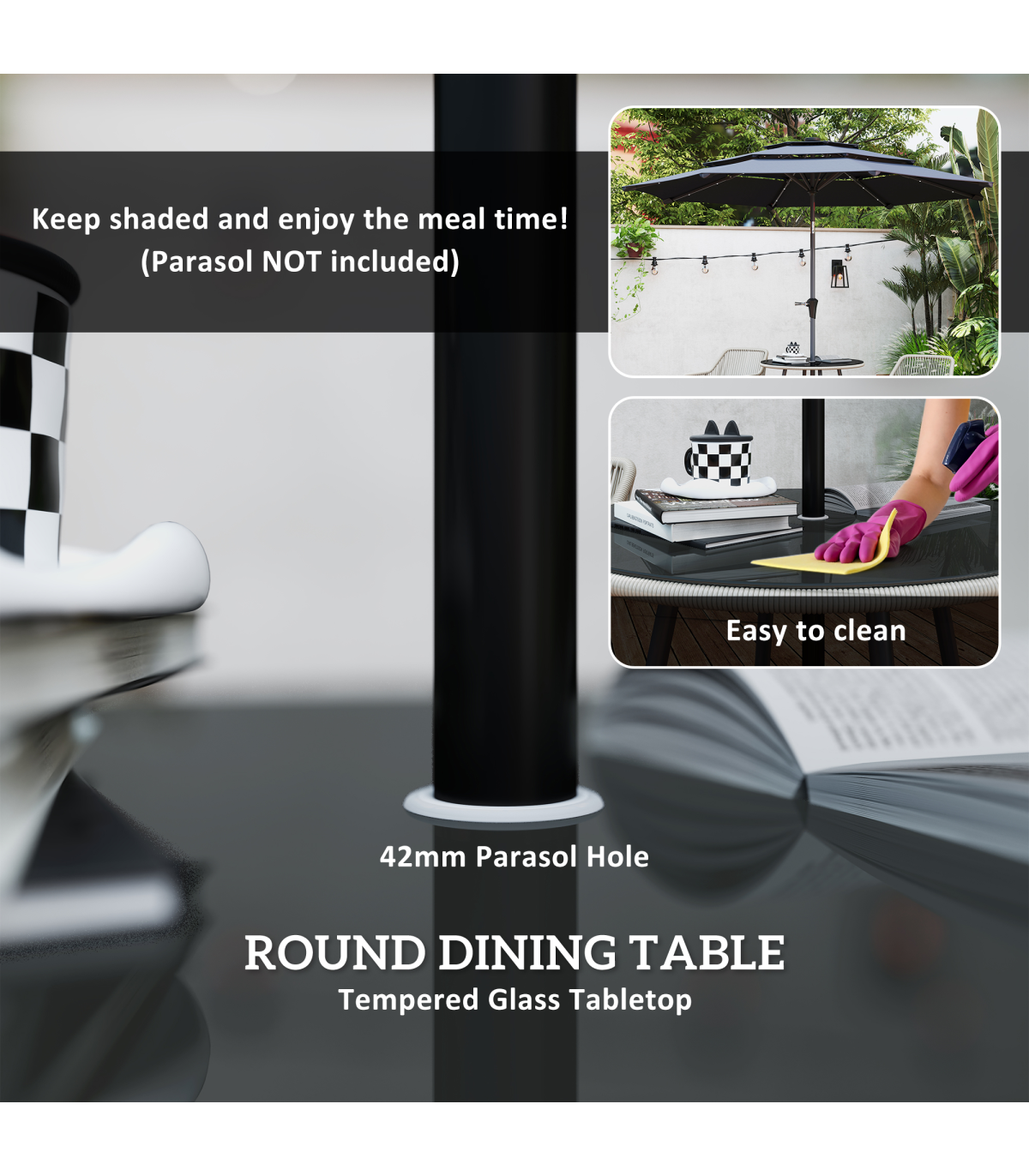 ● Tempered glass-top table with Φ4.2cm middle hole for parasol