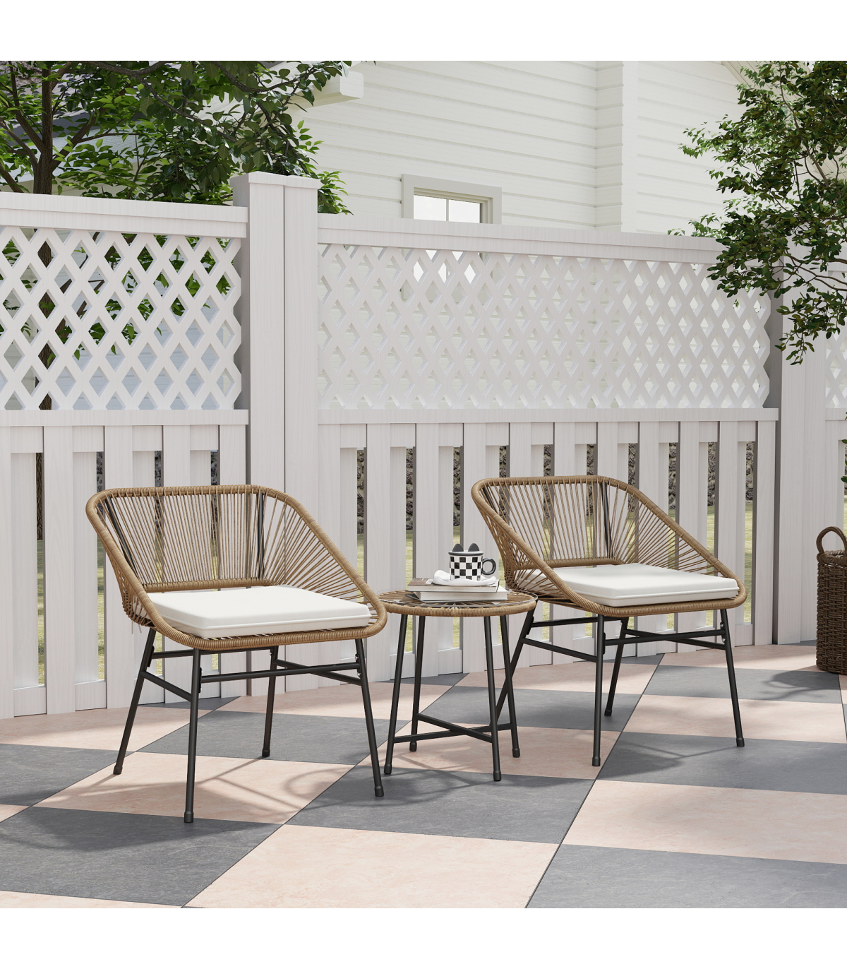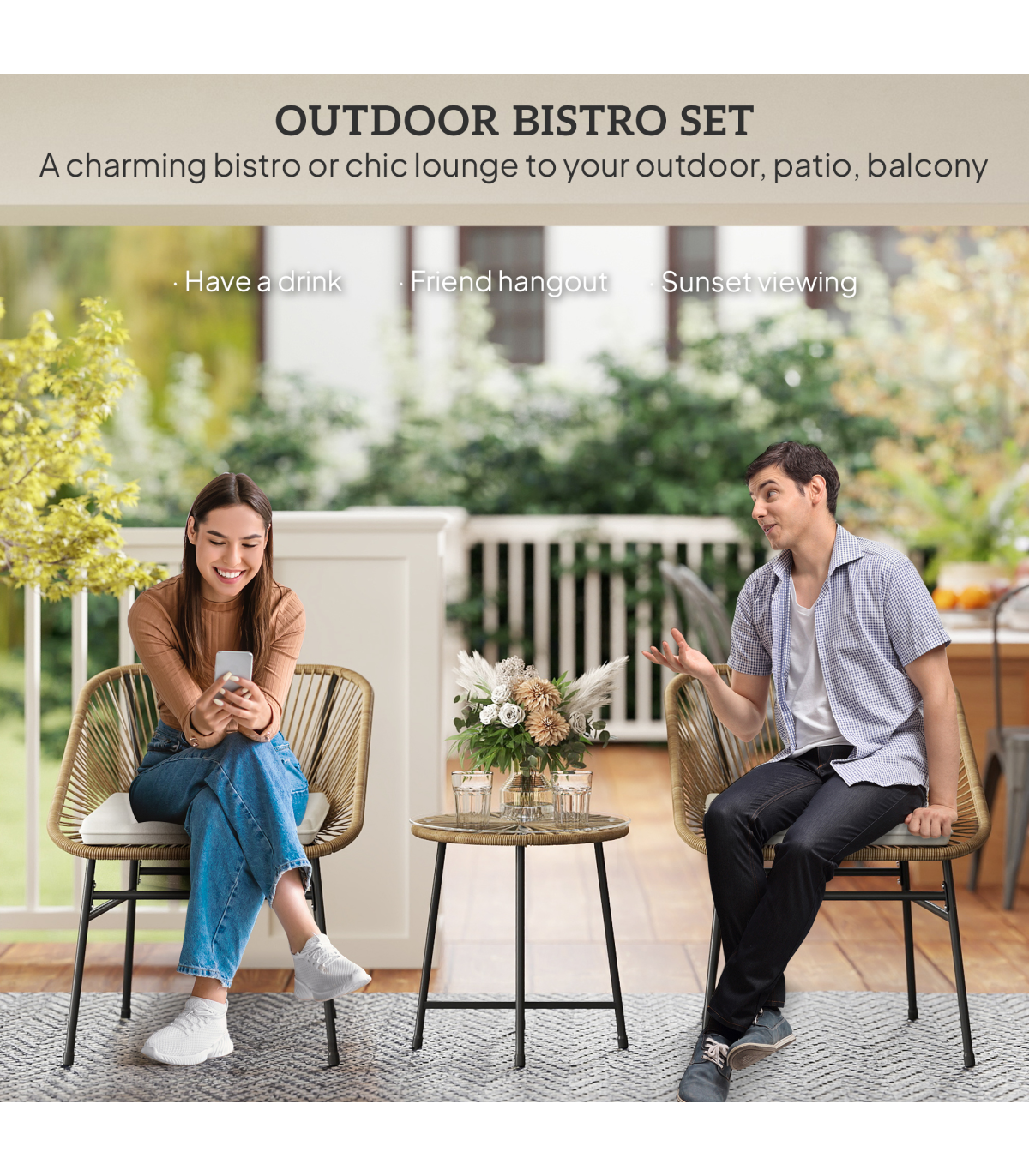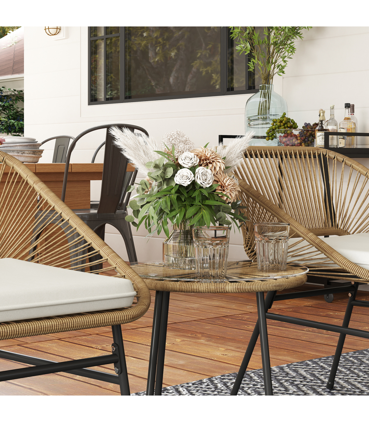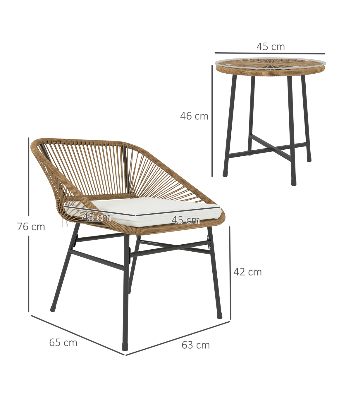 ● Material: Steel, PE Rattan, Polyester, Tempered Glass