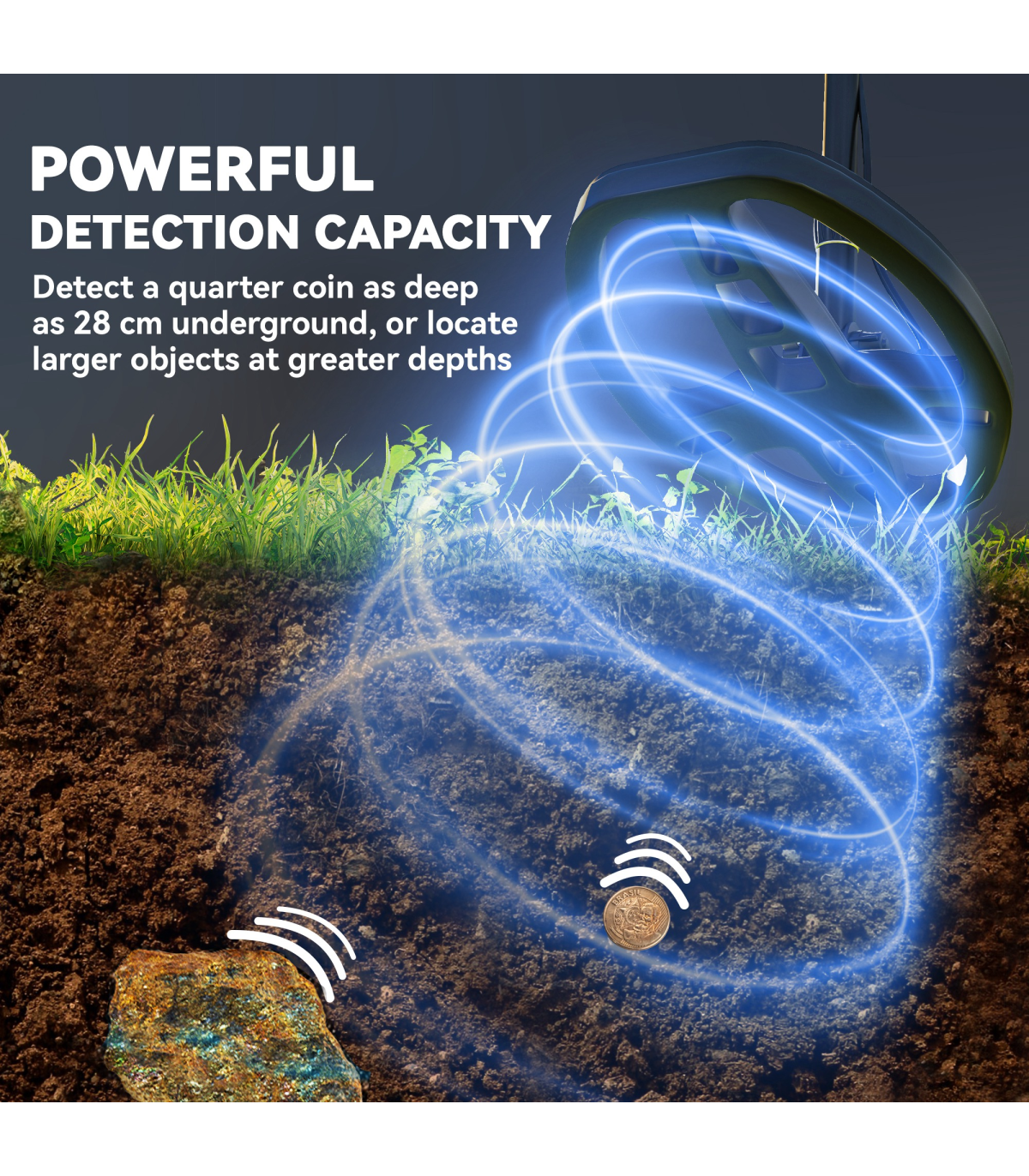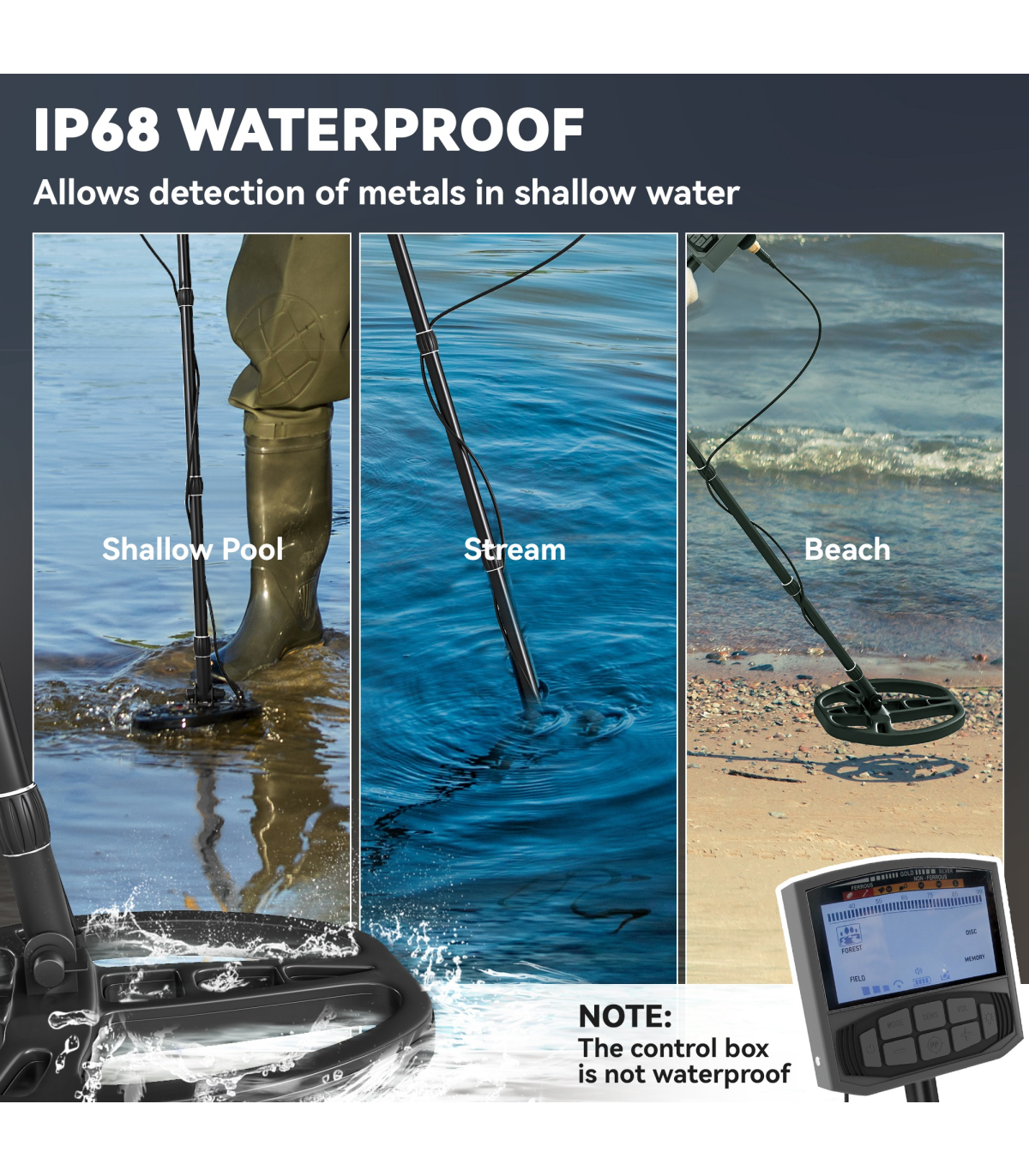 ● IP68 waterproof search coil ensures reliable detection in wet conditions