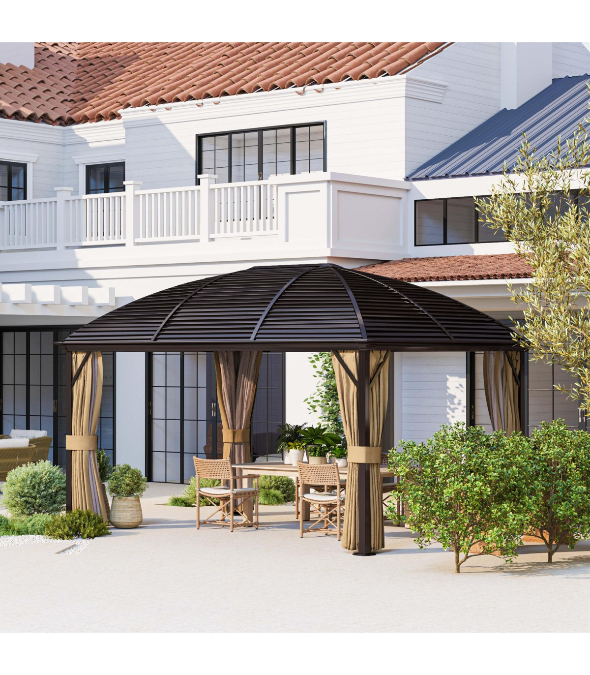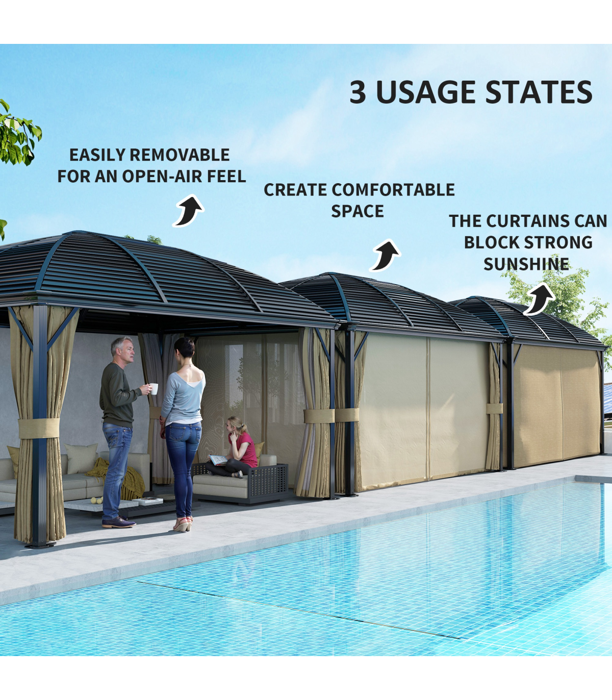 ● Curtains all around for privacy with mosquito netting