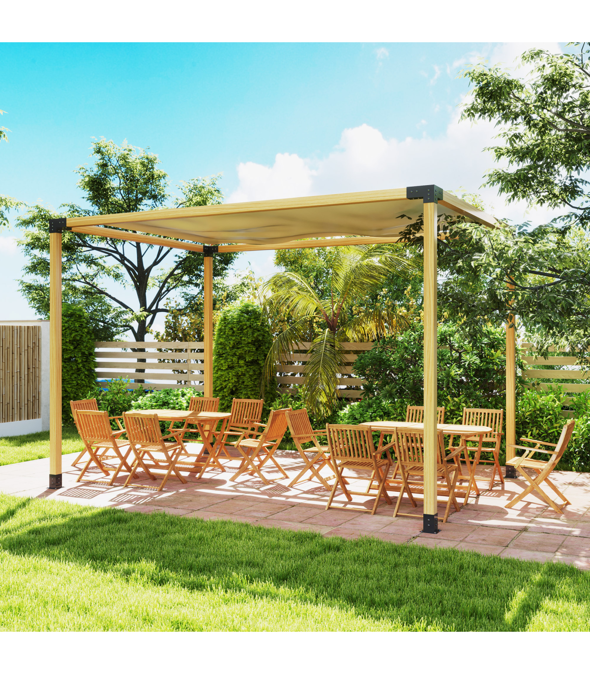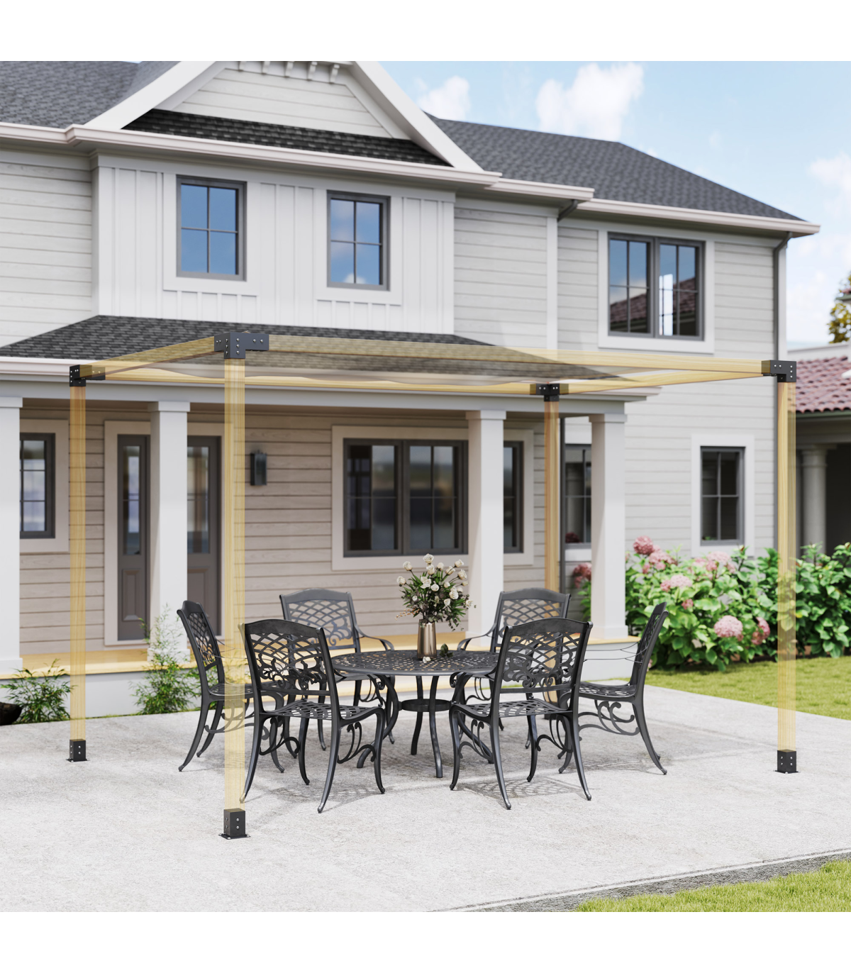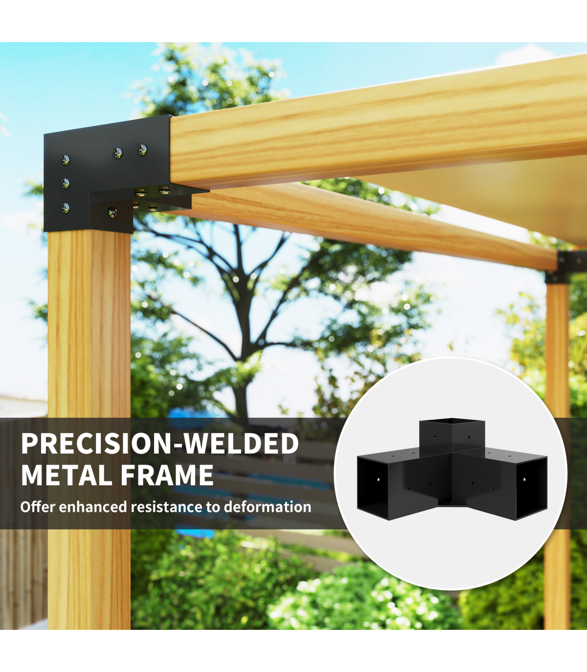 ● Powder coating on metal frame enhances durability against elements