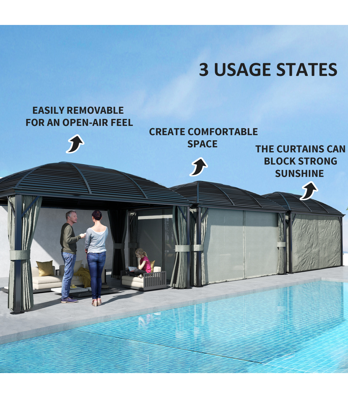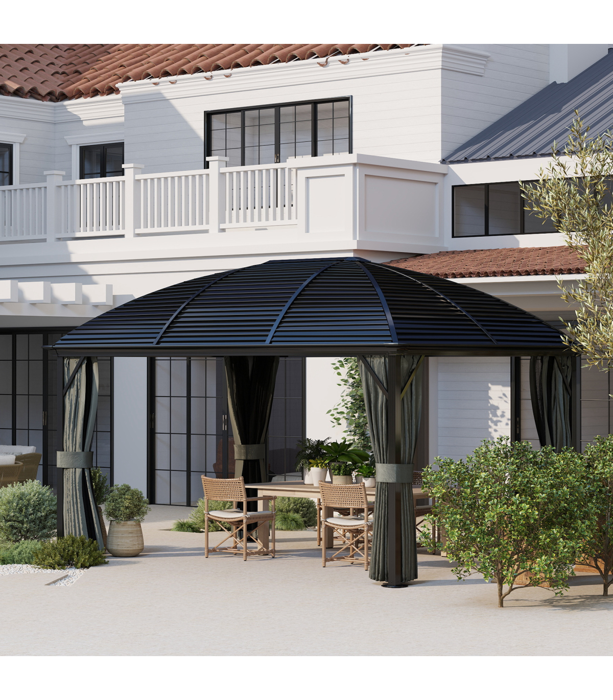 ● Curtains all around for privacy with mosquito netting