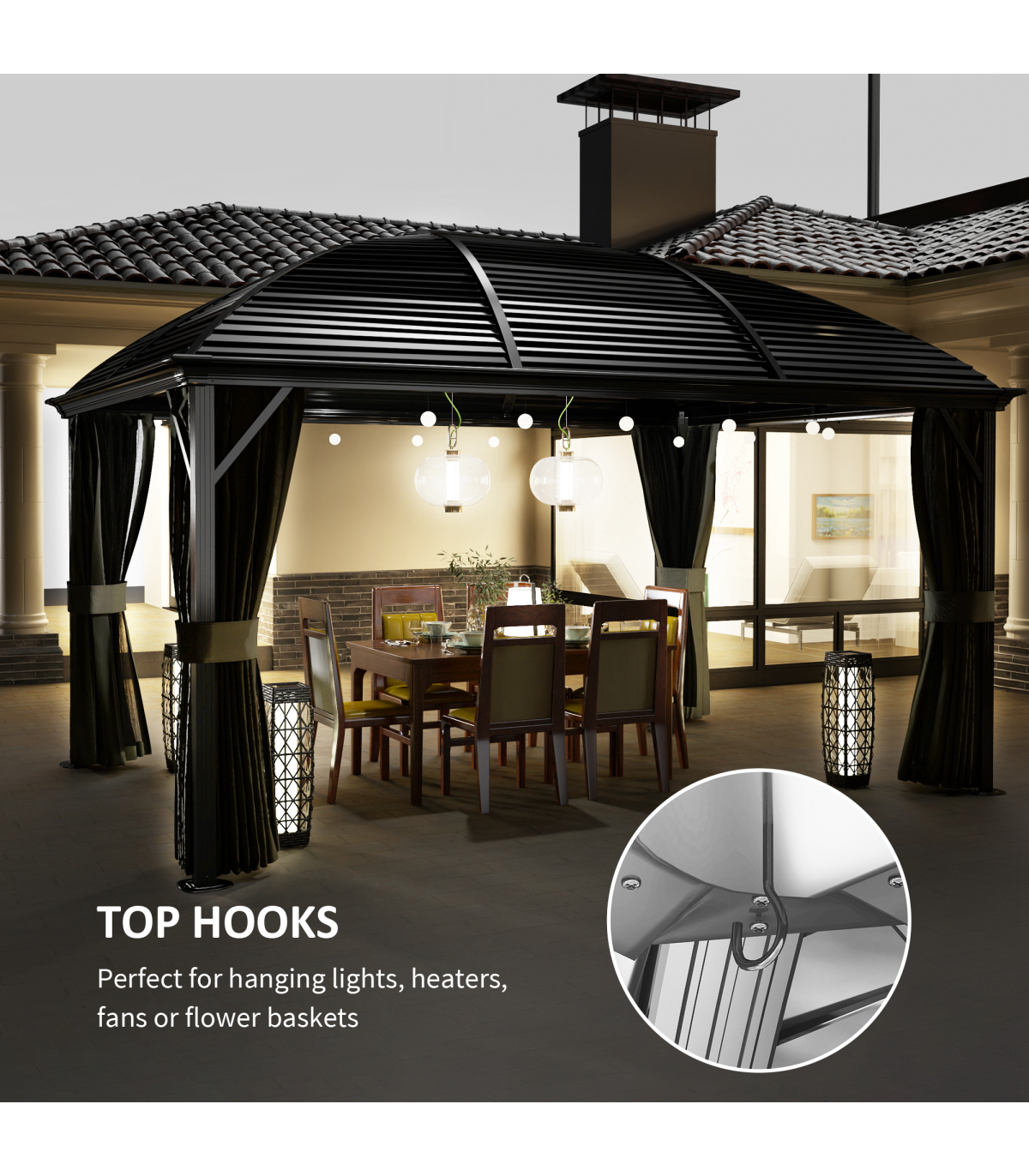 ● Two inner top hanging hooks for a lantern and other lighting