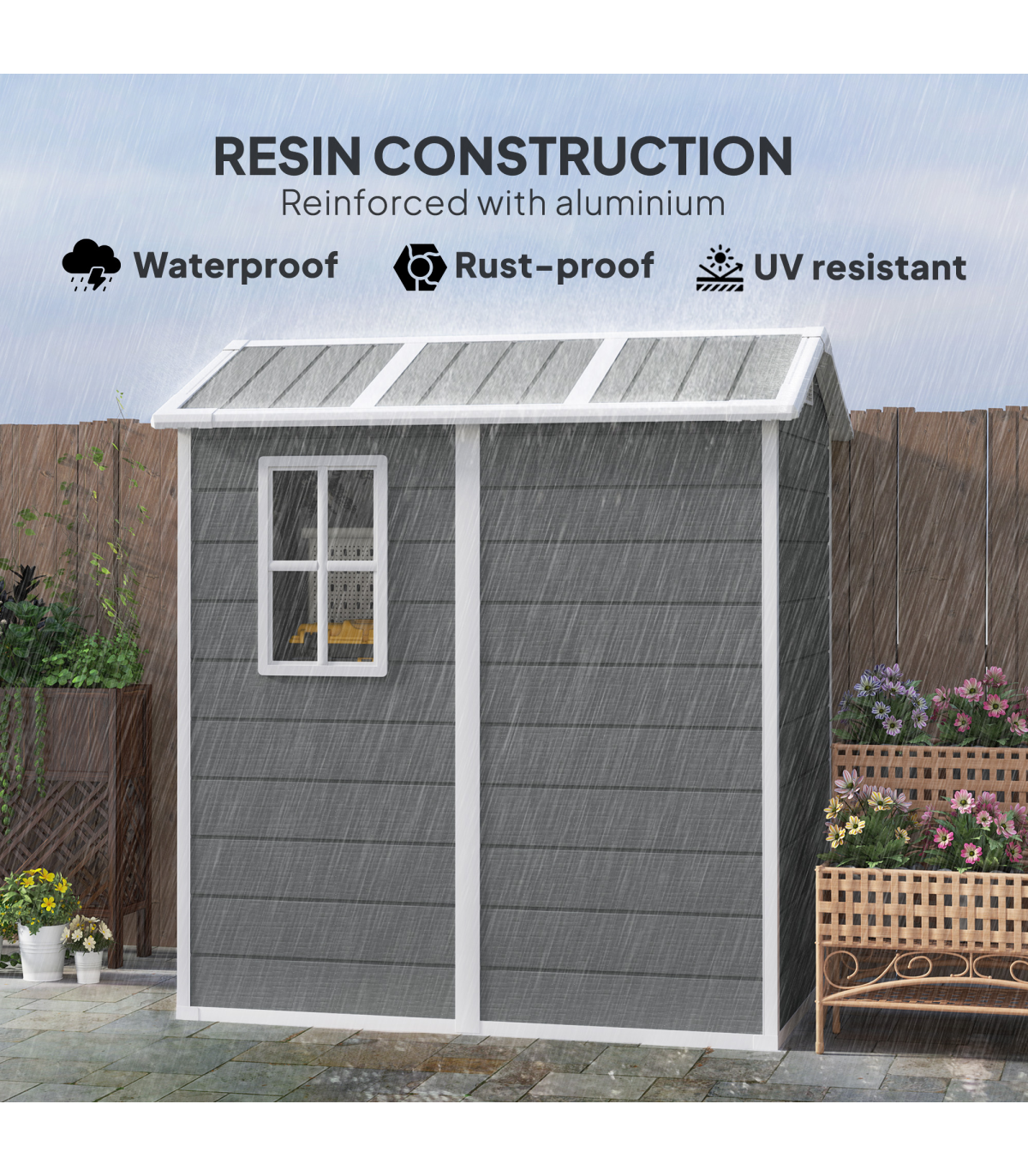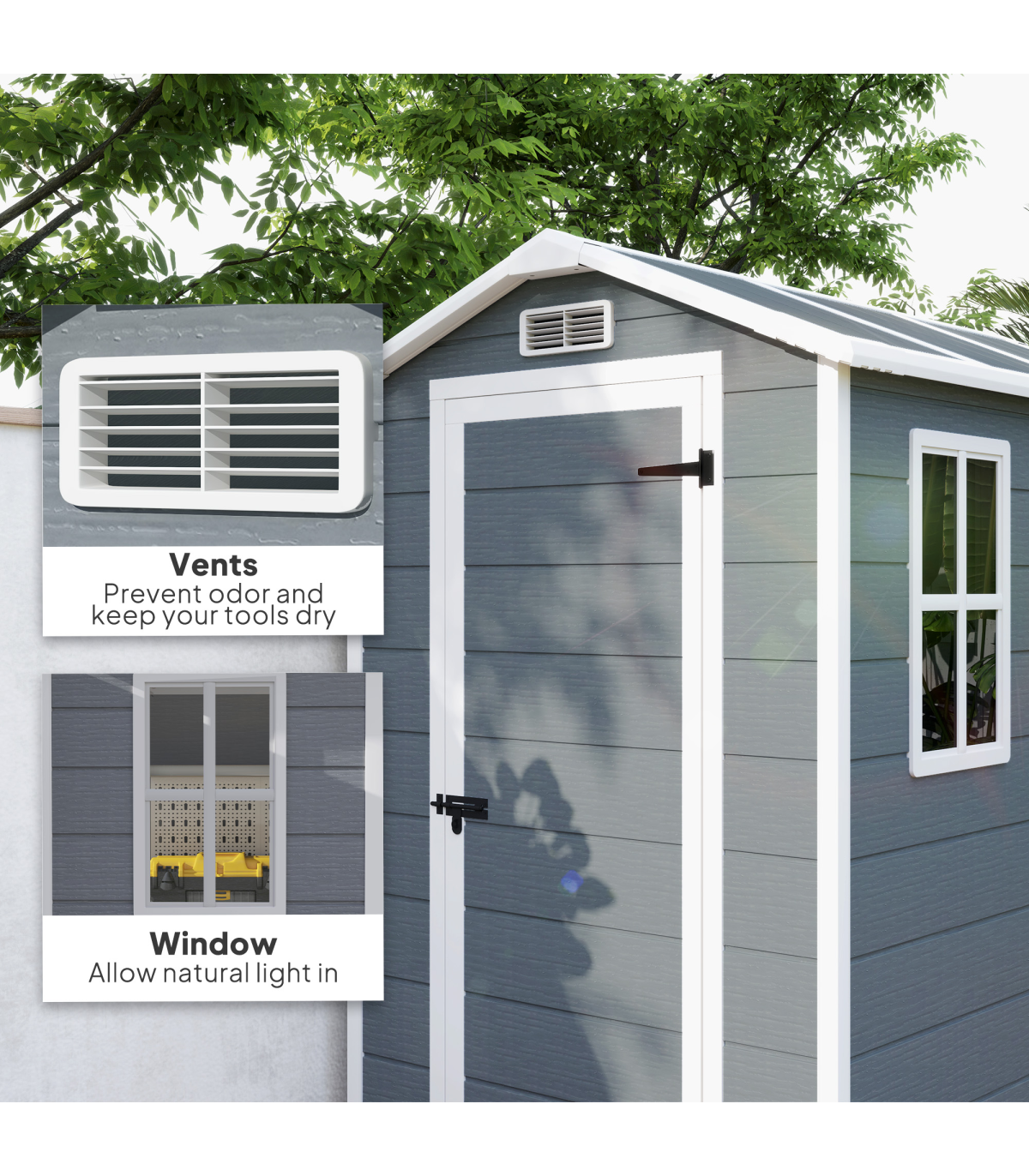 Discover the ultimate outdoor storage solution with our spacious Grey Tool Shed, designed to withstand harsh weather conditions and provide ample storage space for your tools and garden equipment.