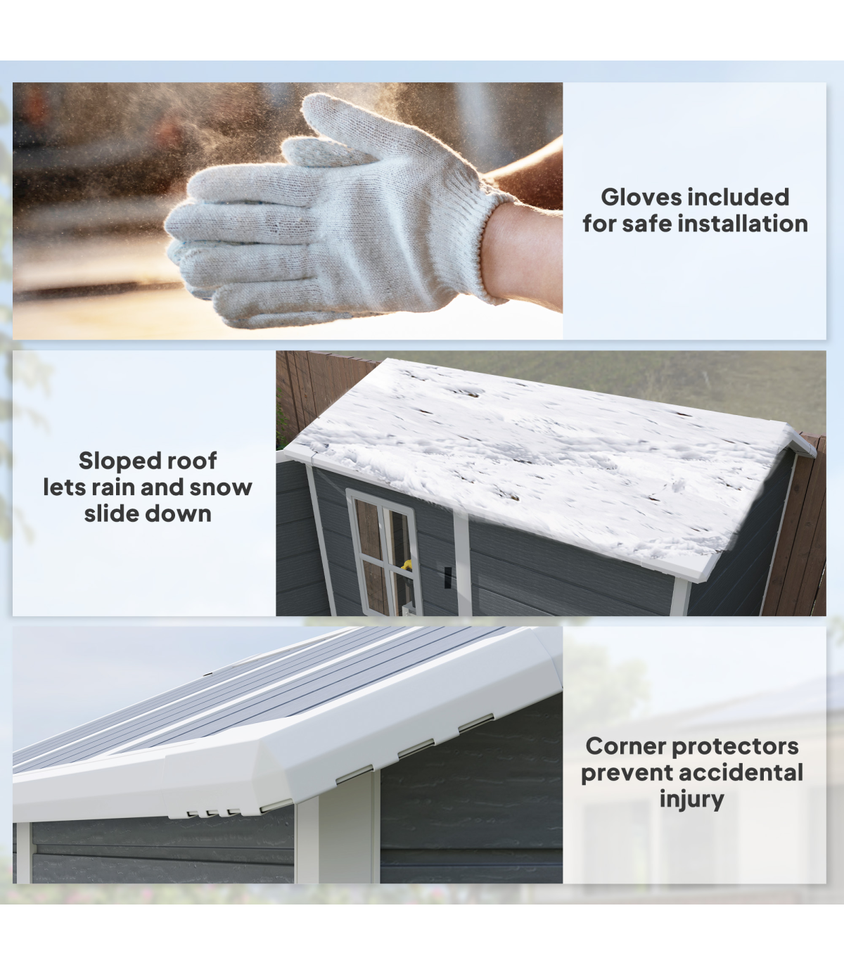 - Apex Roof Design: The innovative design prevents water and snow accumulation, prolonging the lifespan of the shed.