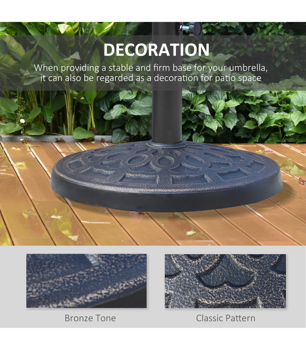 This stylish and functional bronze tone patio umbrella base is designed to provide stability and elegance to your outdoor spaces. Constructed from durable, rust-resistant resin, it ensures reliable support for your patio umbrella, making it an essential addition to any garden or patio.