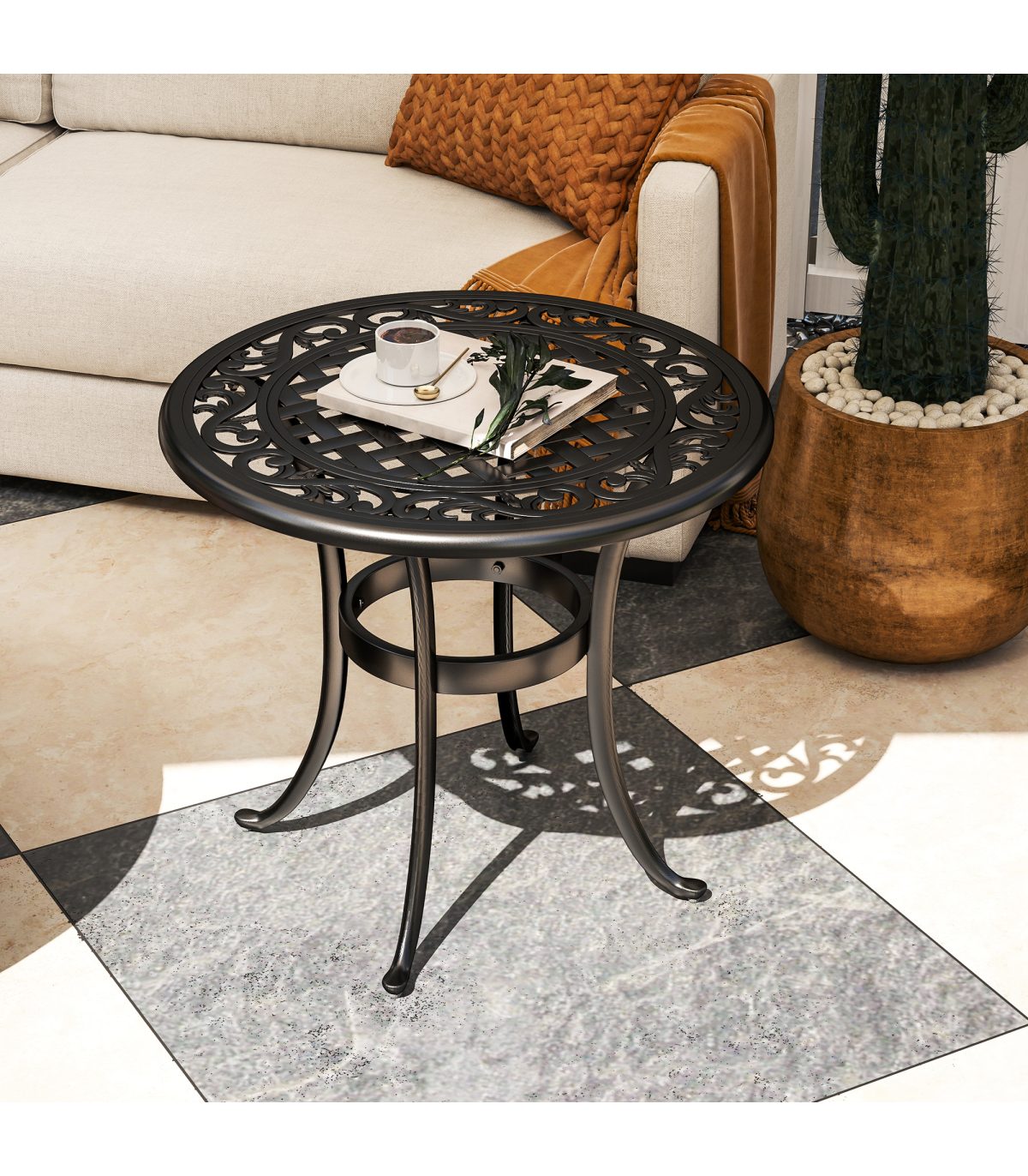 Enhance your outdoor space with this stunning black aluminium garden side table. Designed for both style and functionality, it serves as a striking addition to any patio or garden decor.