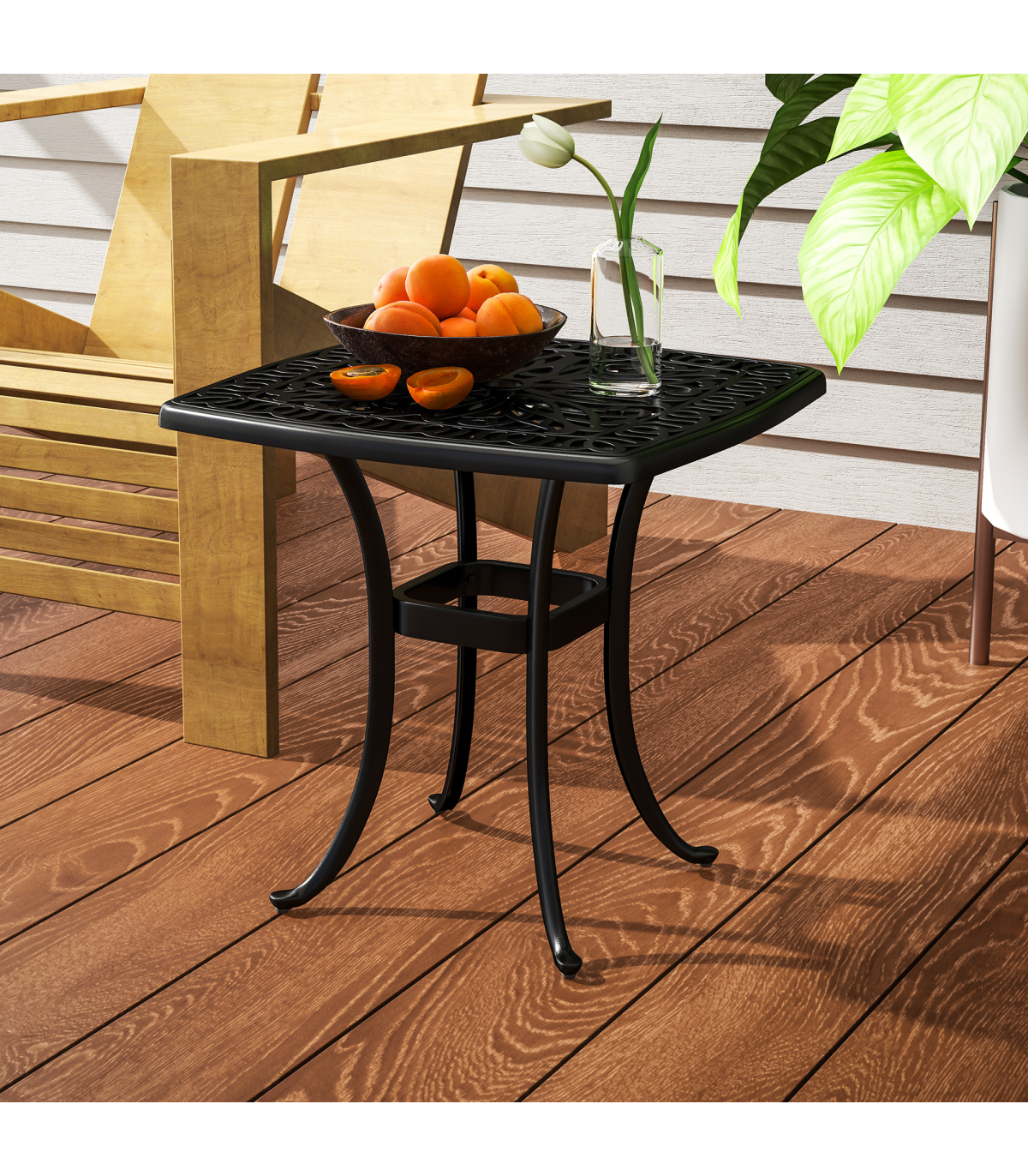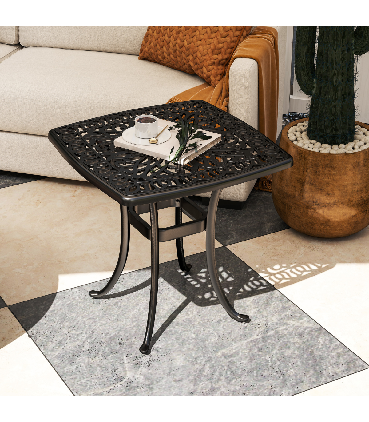 - Attractive Design: The floral cut-out design on the tabletop offers an appealing aesthetic, elevating your outdoor decor.