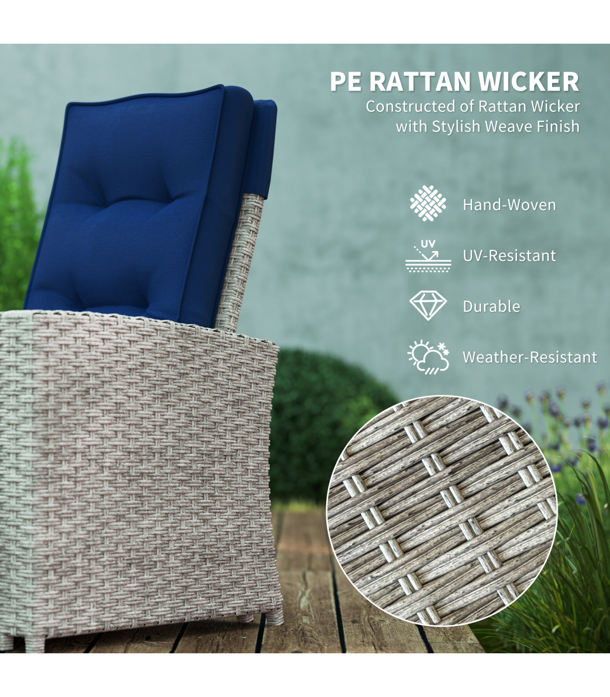 - Colour: Grey Rattan with Navy Blue Cushions
