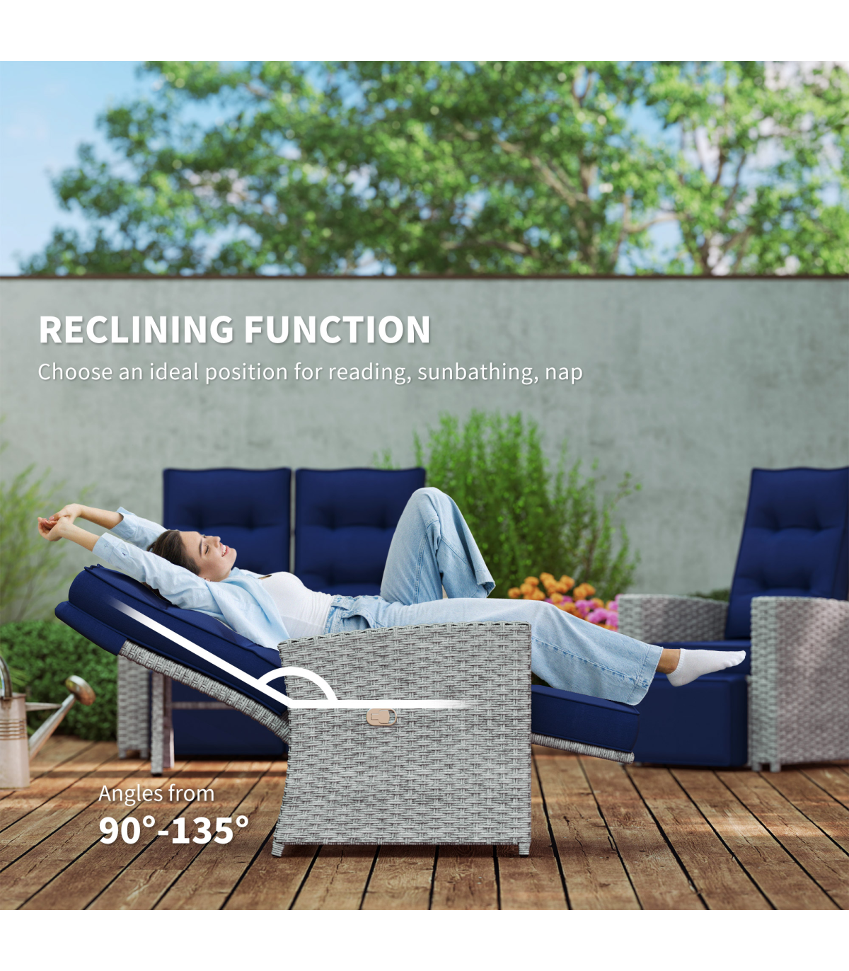 - 135° Maximum Reclining Back: Enjoy ultimate comfort with a reclining back and manual footrest, allowing you to lounge effortlessly.