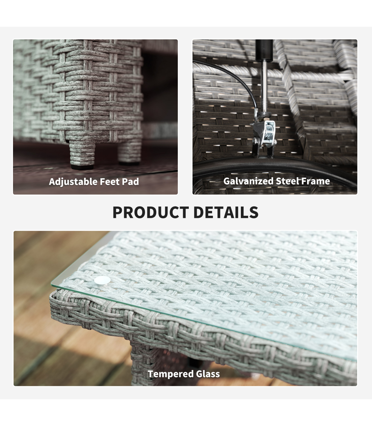 - 5 mm Glass Tabletop: The sleek glass surface offers a safe and solid area for drinks and snacks, enhancing your outdoor experience.