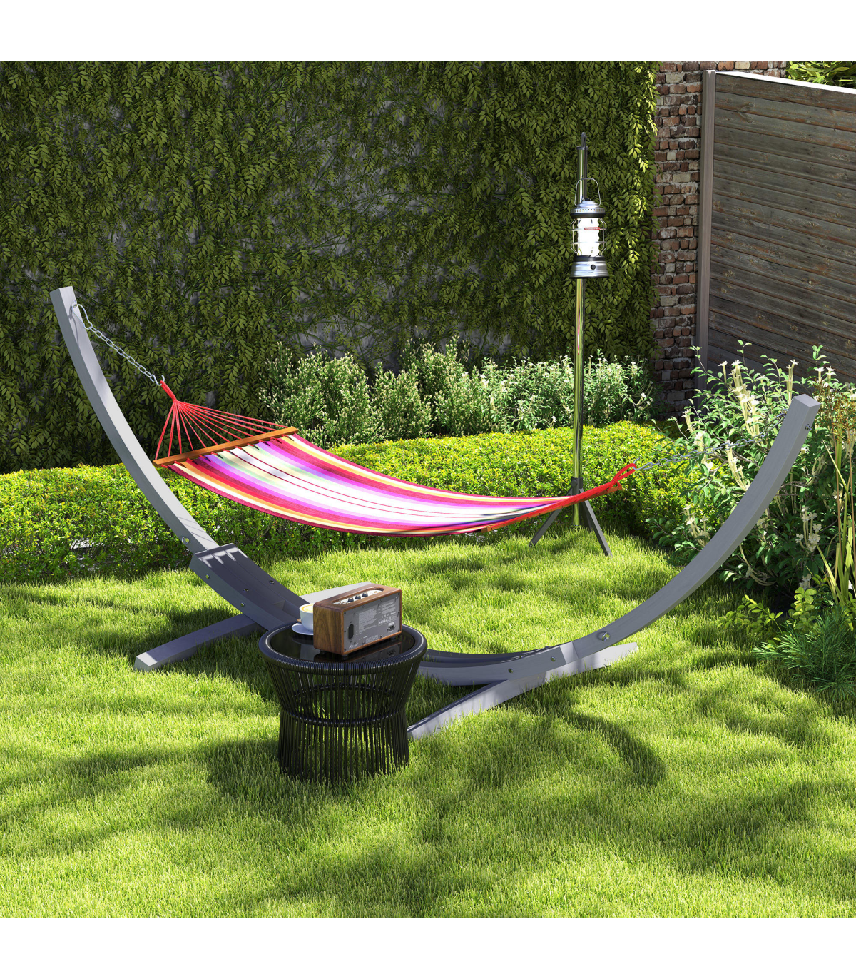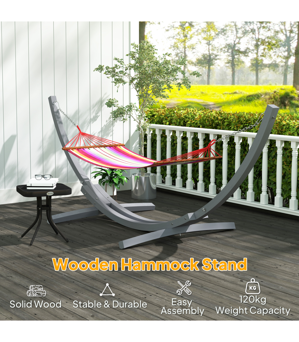 Experience relaxation like never before with our Solid Wood Crescent Arc Hammock Stand. Designed for both aesthetics and functionality, this robust stand supports a variety of hammocks, making it a versatile addition to your home decor.