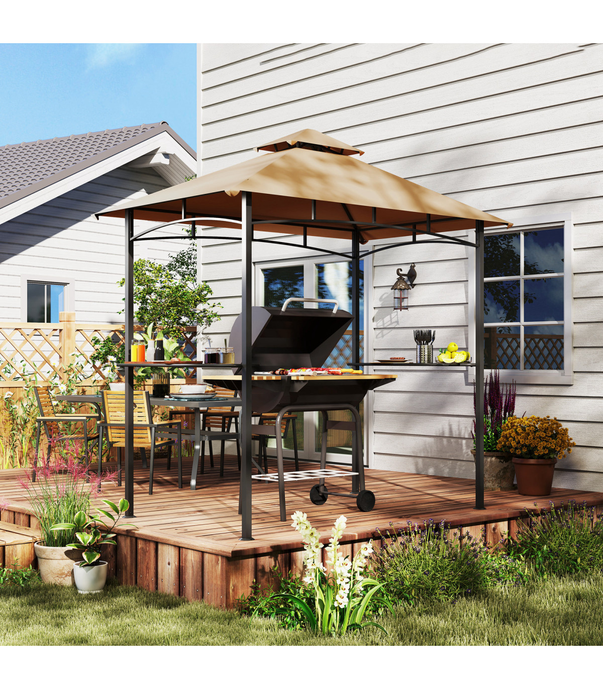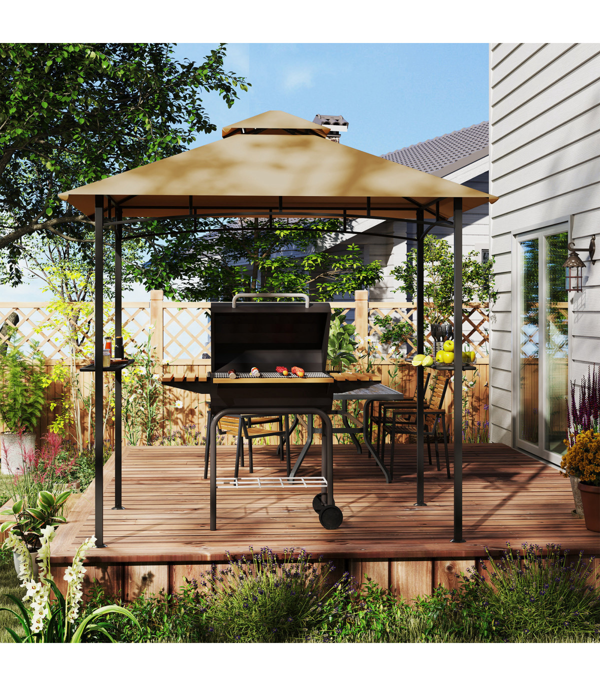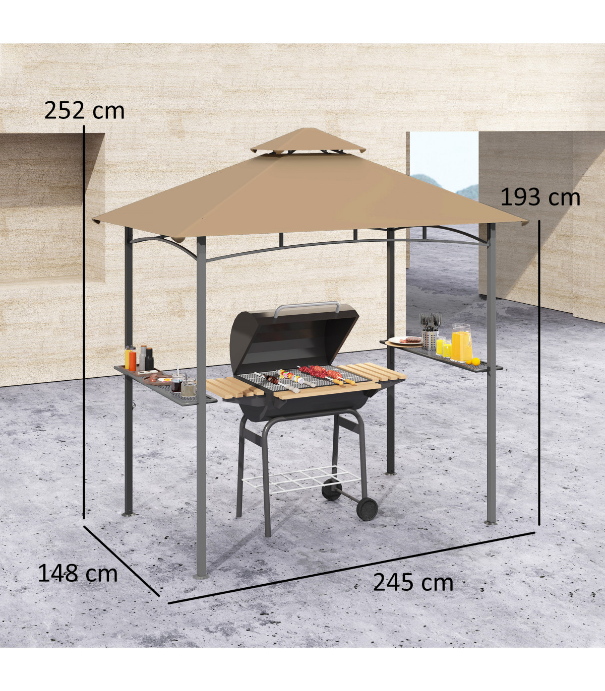 ● Two side shelves to hold food, cooking tools, drinks and more