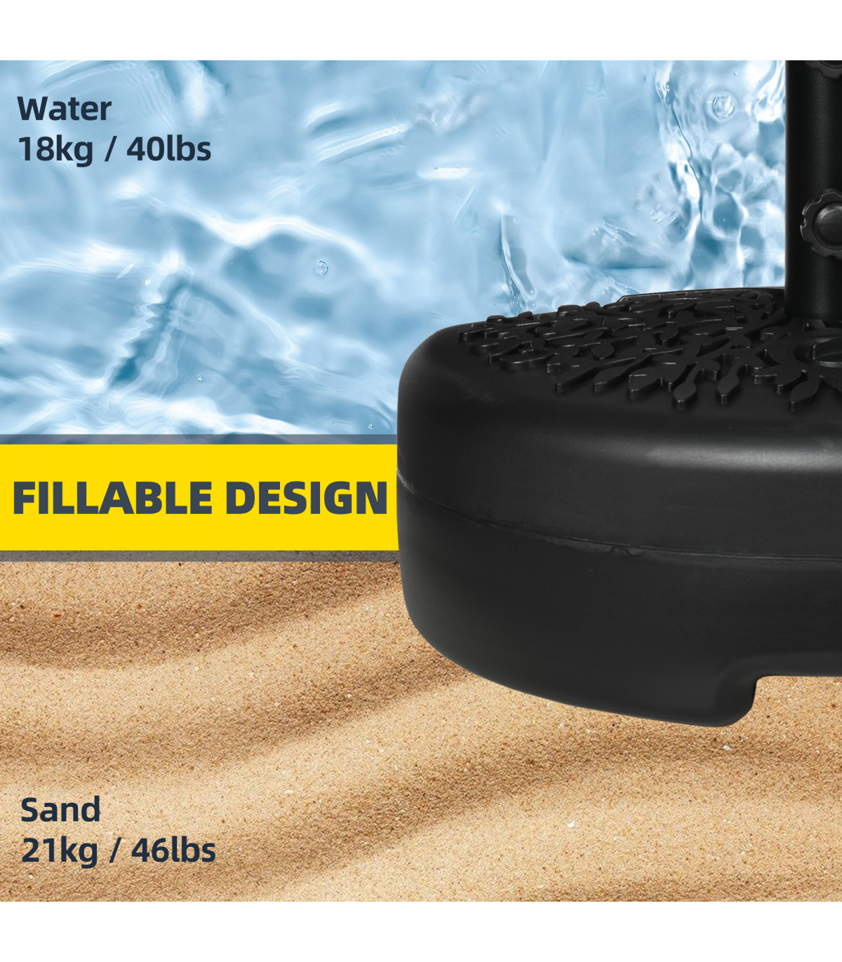 - Water-Filled Stability: Holds up to 18kg of water (21kg for added weight) for firm anchoring.