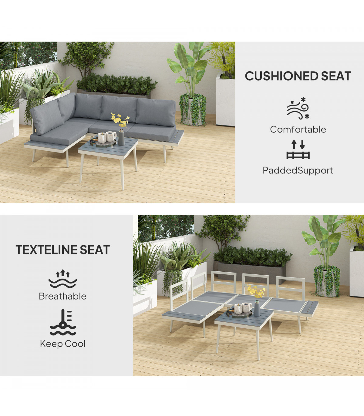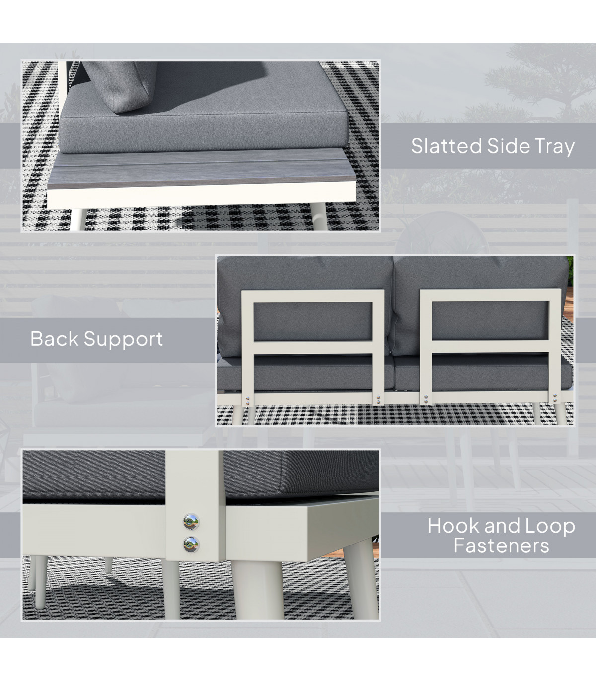 ● Weight Capacity: 240 kg (loveseat), 30 kg (table), 15 kg (side tray)