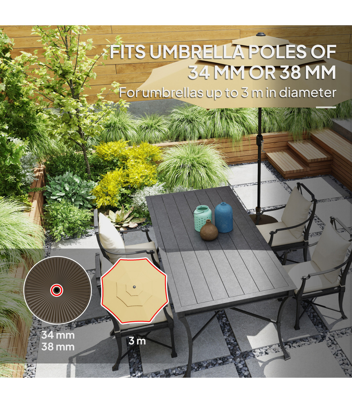 ● Fits Umbrella Pole: Φ34 mm, Φ38 mm