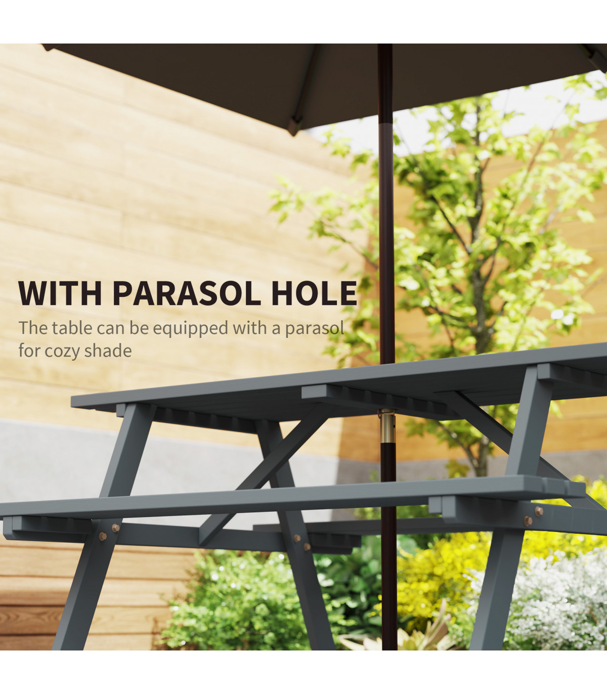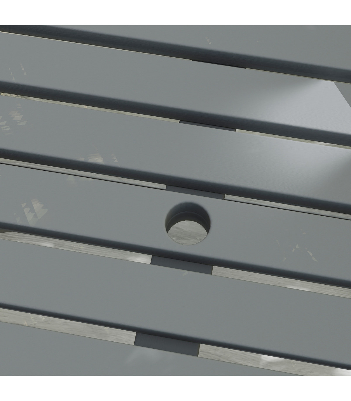 ● A parasol cutout allows user to add their own shade when needed to enjoy outdoor space in sun