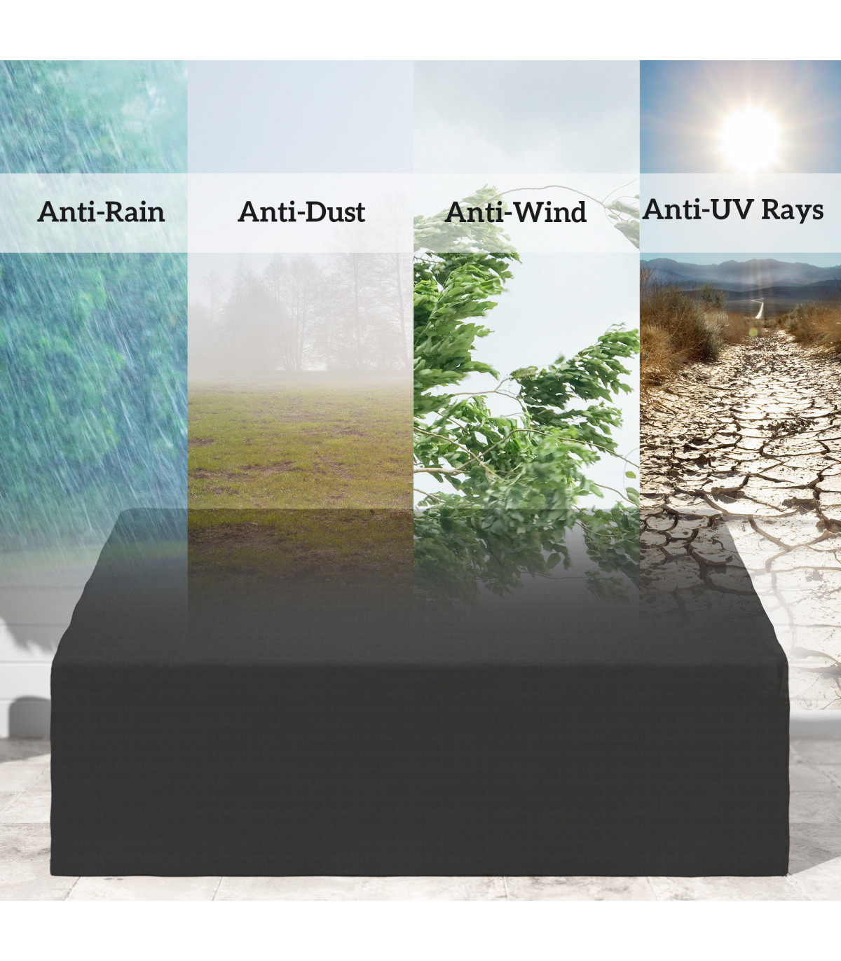● With fixing bandage in four corners to secure cover in the windy days