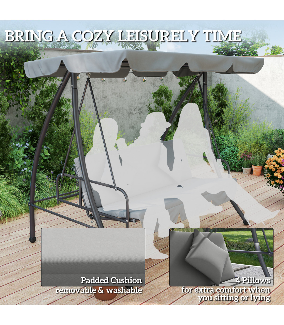 ● Thick padded seat, backrest and pillows for complete comfort