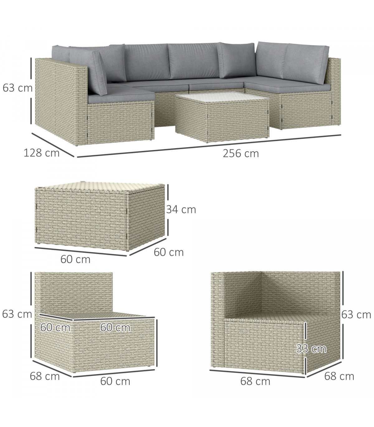 ● Cushion Thickness: 6 cm (seat), 8 cm (back)