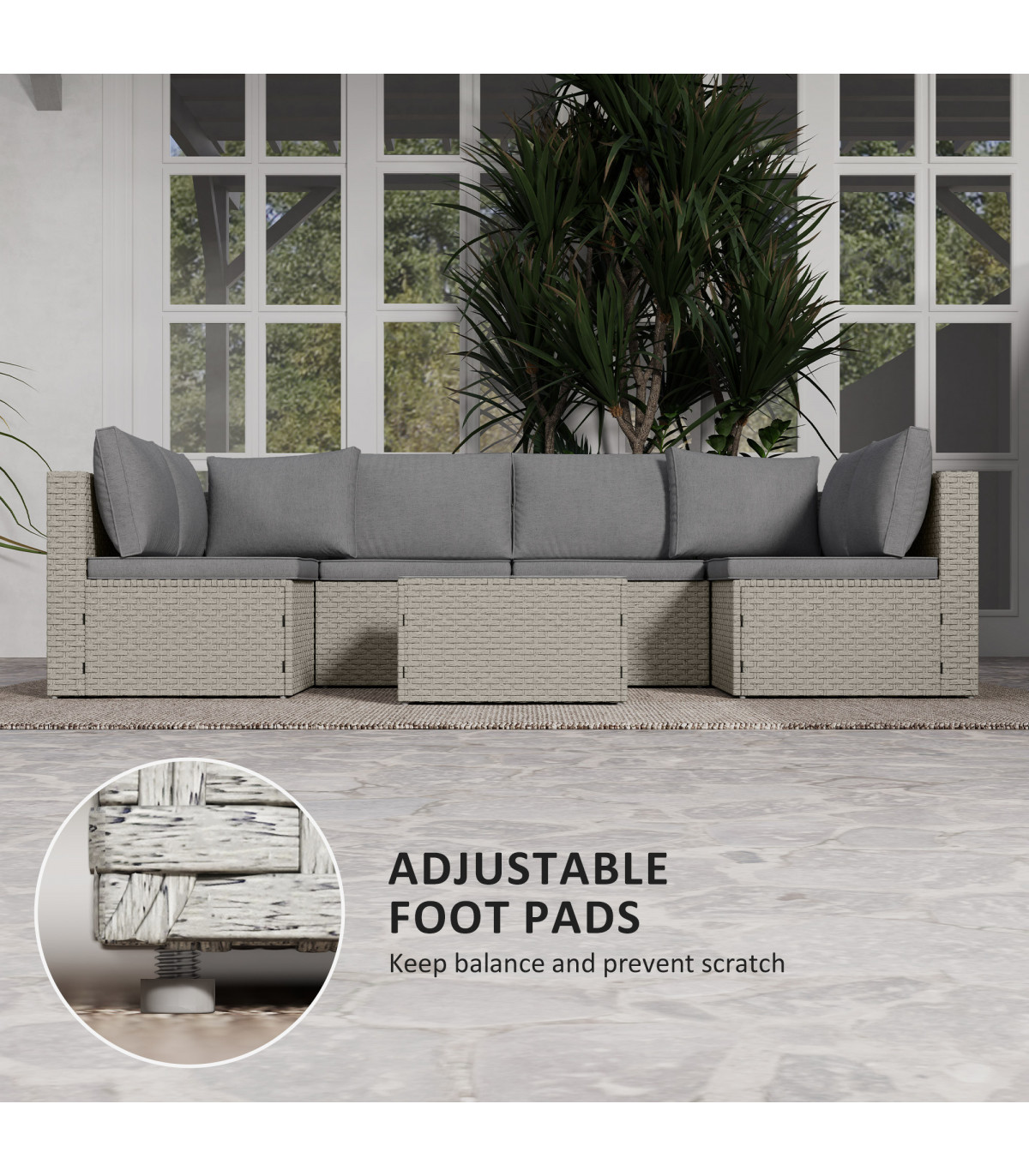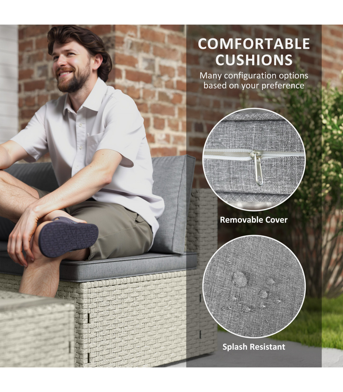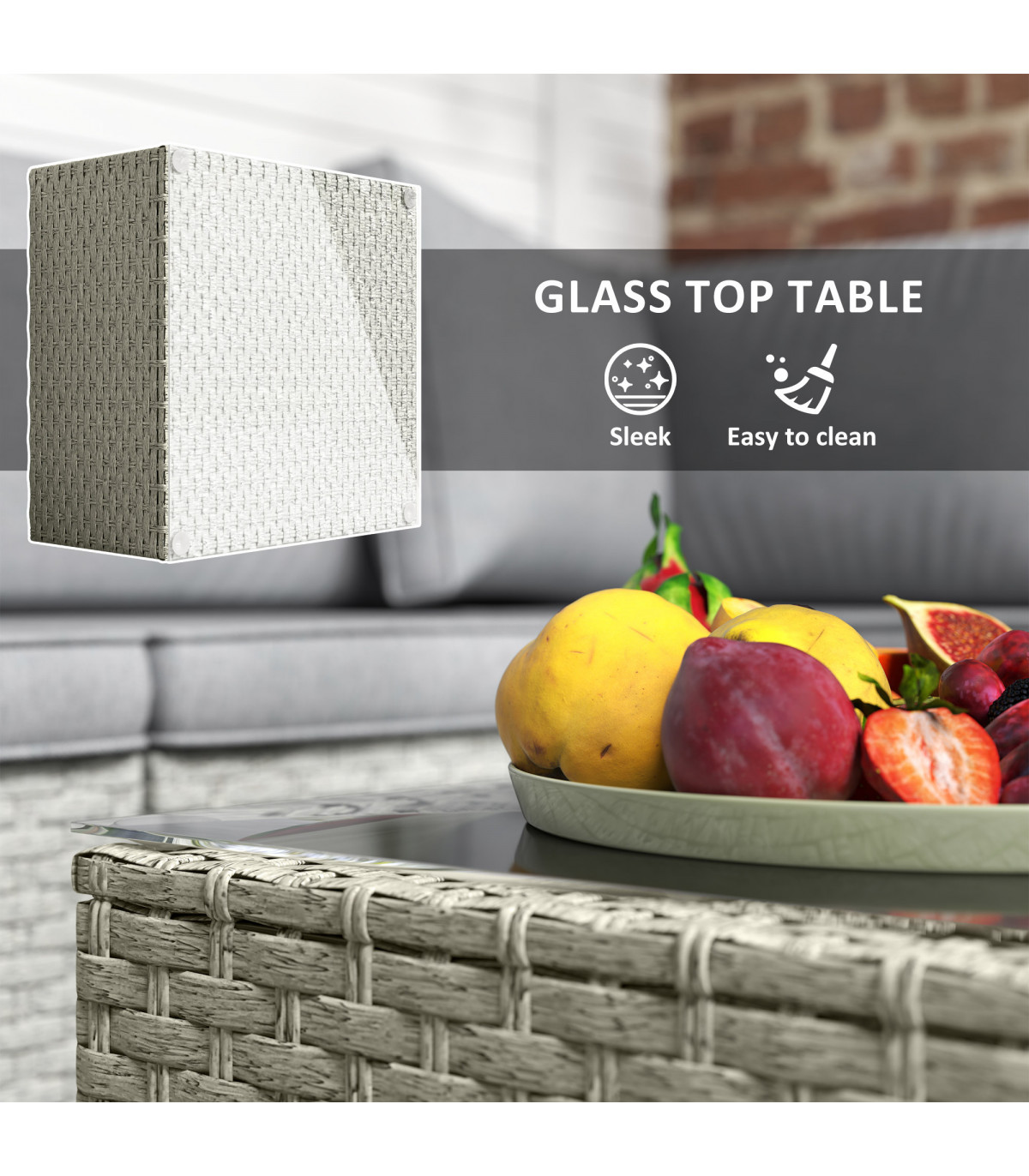 ● Material: Steel, PE Rattan, Polyester, Tempered Glass