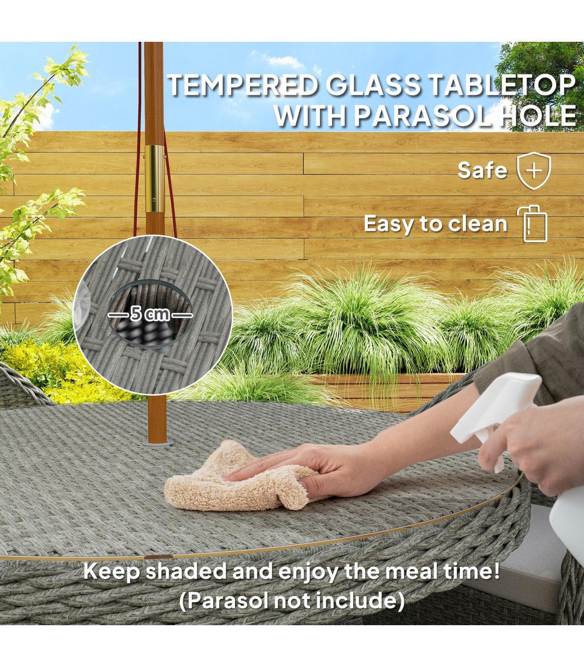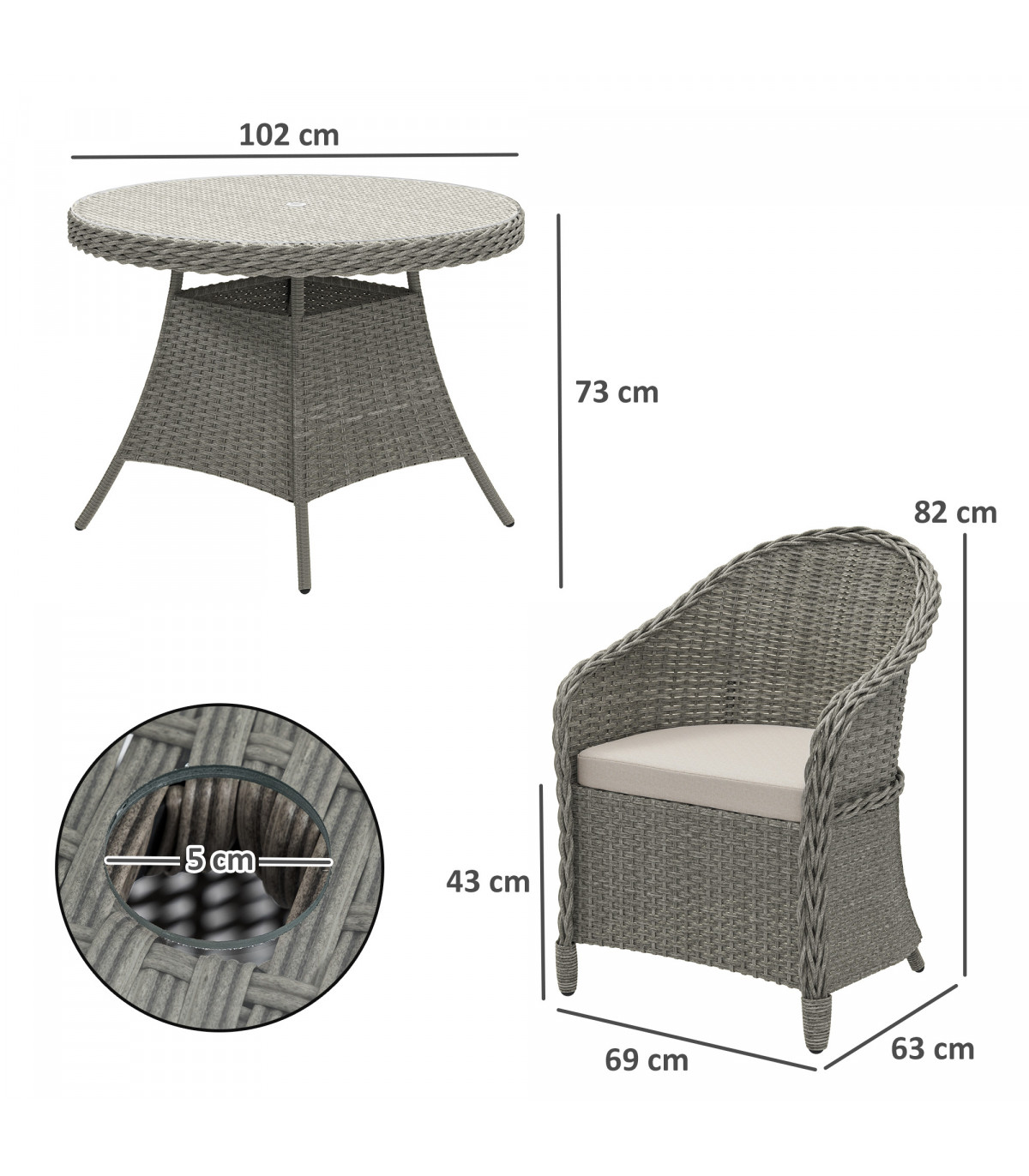 ● Steel frame for a strong core, wrapped in robust plastic wicker