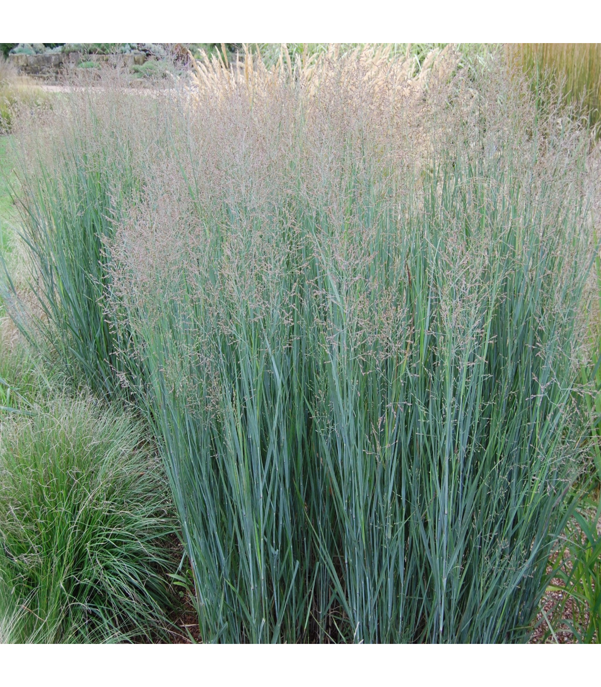Panicum virgatum ‘Heavy Metal’ is a standout ornamental grass celebrated for its striking metallic-blue foliage and upright, architectural form. In late summer, airy flower panicles emerge, adding a delicate texture that matures into golden seed heads, providing year-round interest. This low-maintenance and drought-tolerant variety is perfect for modern landscapes, borders, or prairie-style plantings.