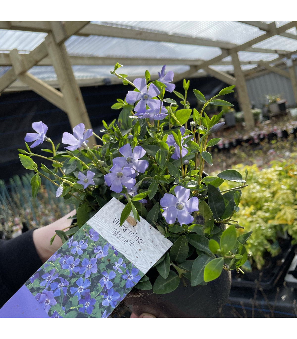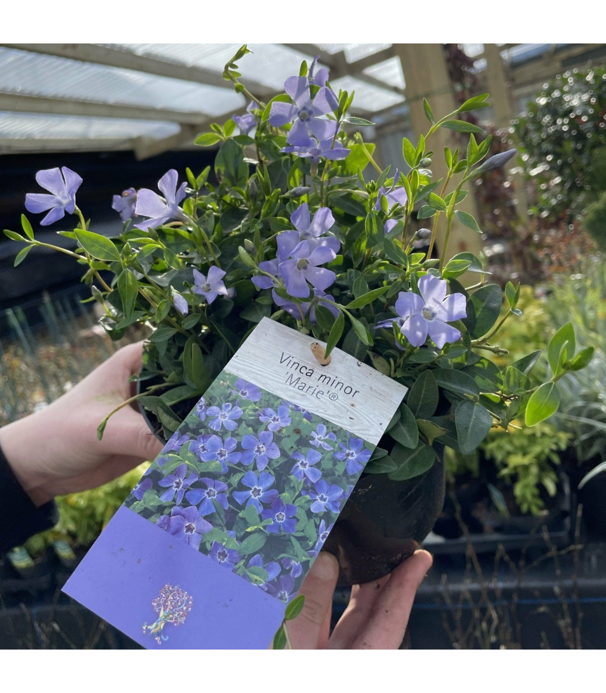 This beautiful Periwinkle produces dainty blue, star shaped flowers above dark green foliage from March - September.