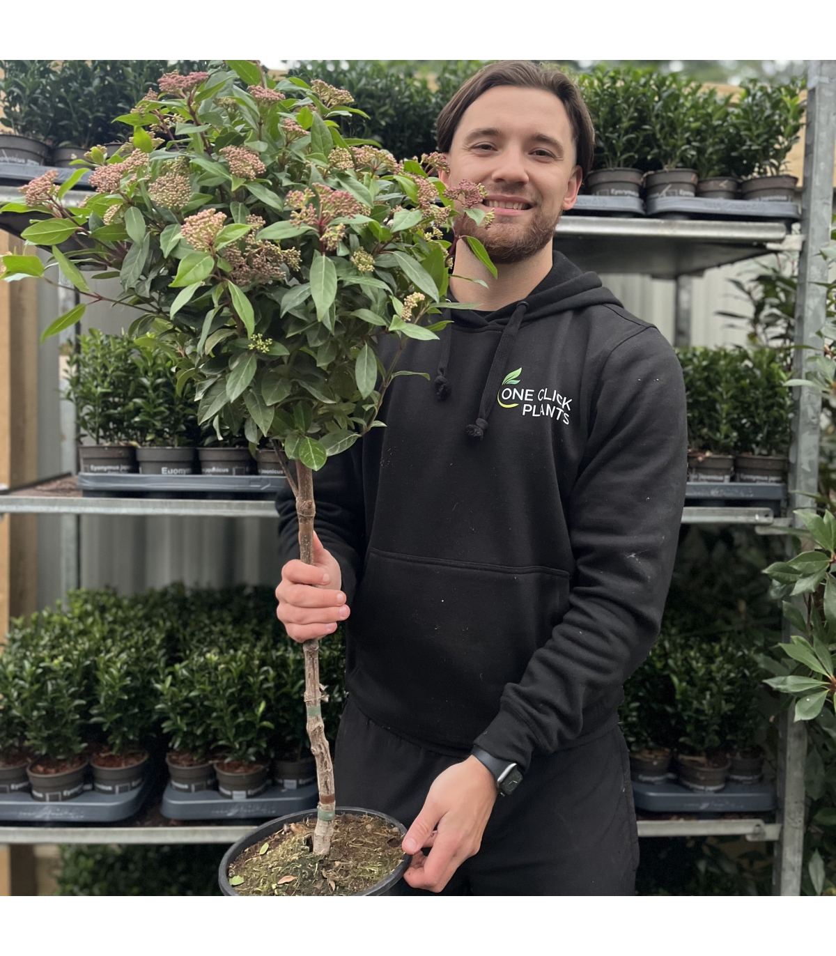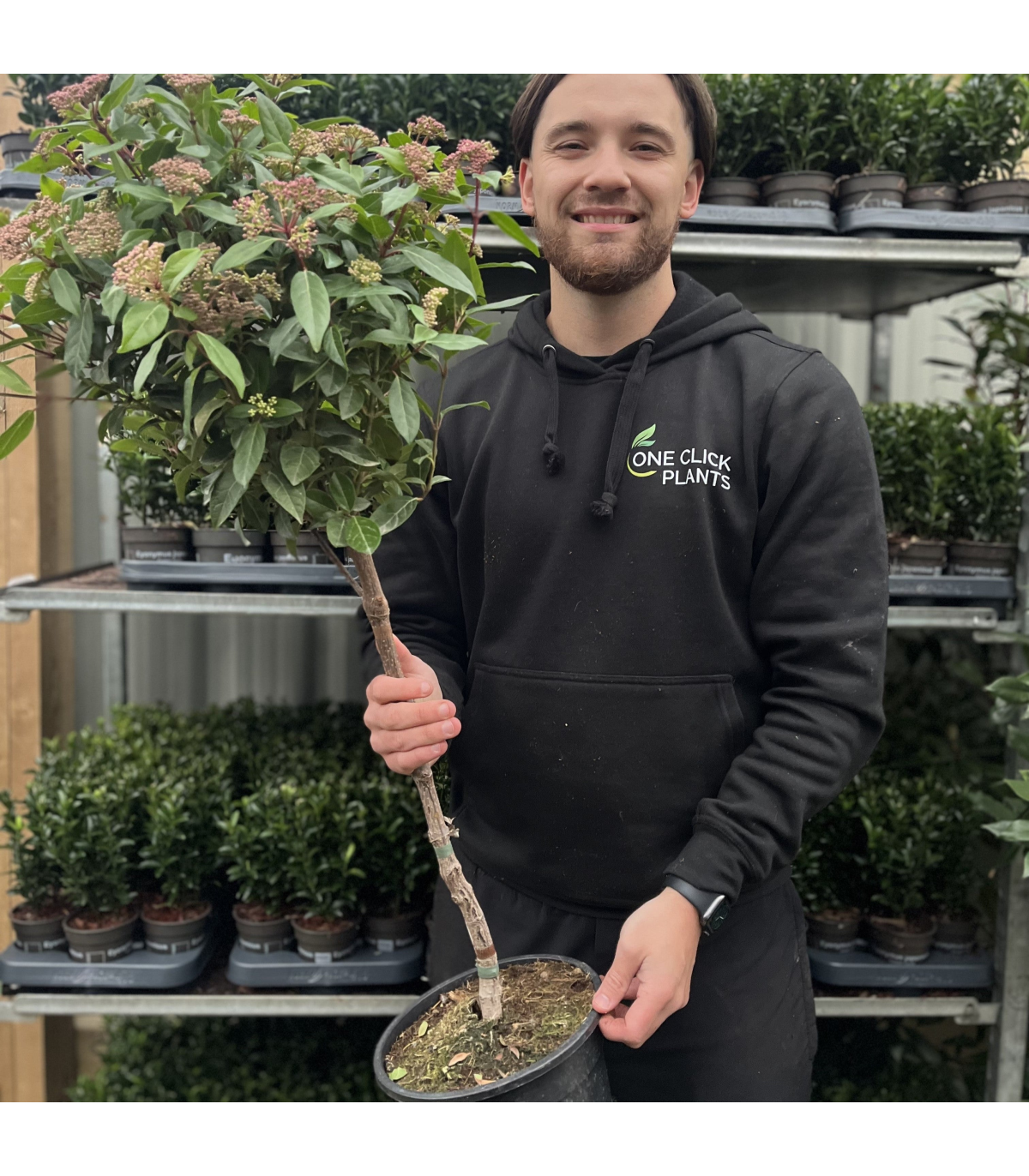 The Viburnum tinus patio tree is a compact and elegant evergreen tree that brings year-round structure and seasonal interest to patios, terraces, and small gardens. With its neatly clipped lollipop shape, glossy dark green foliage, and charming clusters of white flowers, this tree is a versatile and stylish addition to any outdoor space.