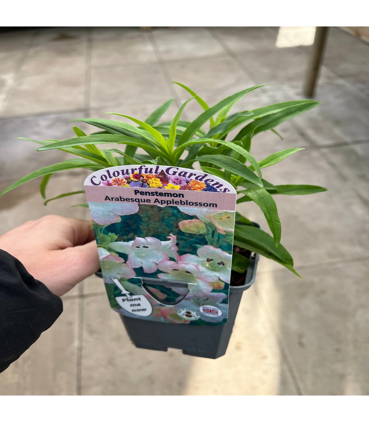 Penstemon 'Arabesque Appleblossom' is a charming perennial prized for its delicate pastel pink flowers and graceful, upright growth habit. This perennial beauty features slender spikes adorned with tubular blossoms that resemble tiny bells, creating a lovely and elegant display in the garden. 'Arabesque Appleblossom' blooms profusely from late spring to early summer, attracting bees and butterflies with its abundant nectar-rich blooms. With its compact form and lush green foliage, this variety is perfect for borders, rock gardens, and cottage-style landscapes. Easy to grow and drought-tolerant once established.
