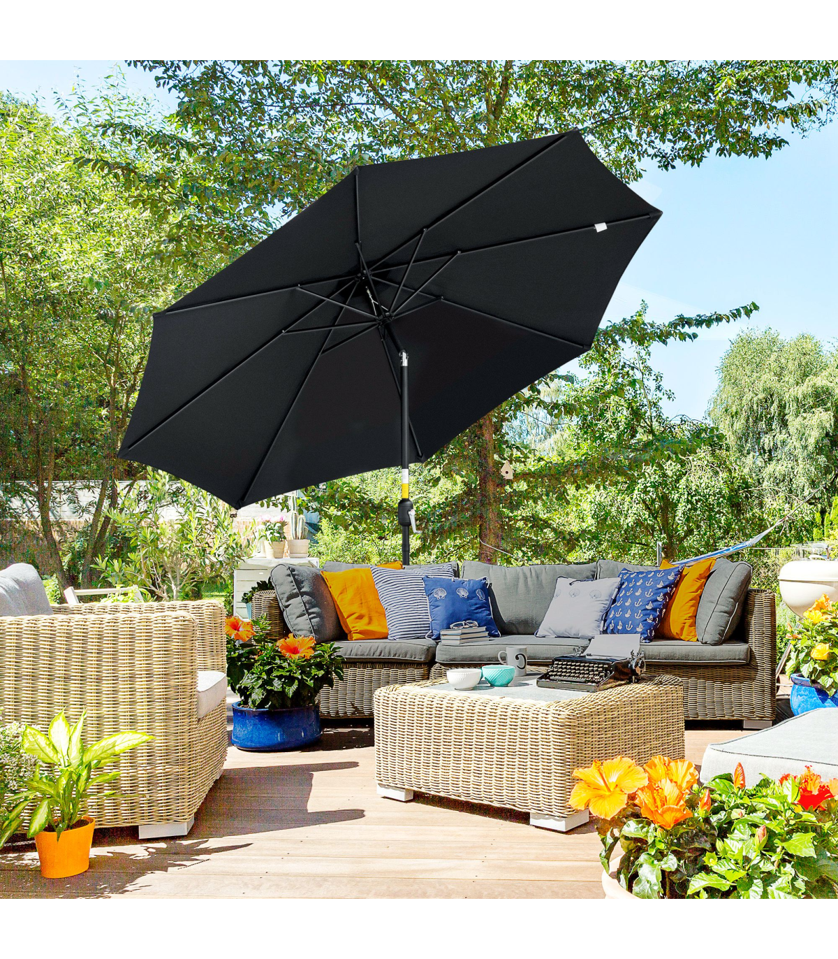 - • With easy to open and close crank feature, the umbrella can tilt to desired angles of shading