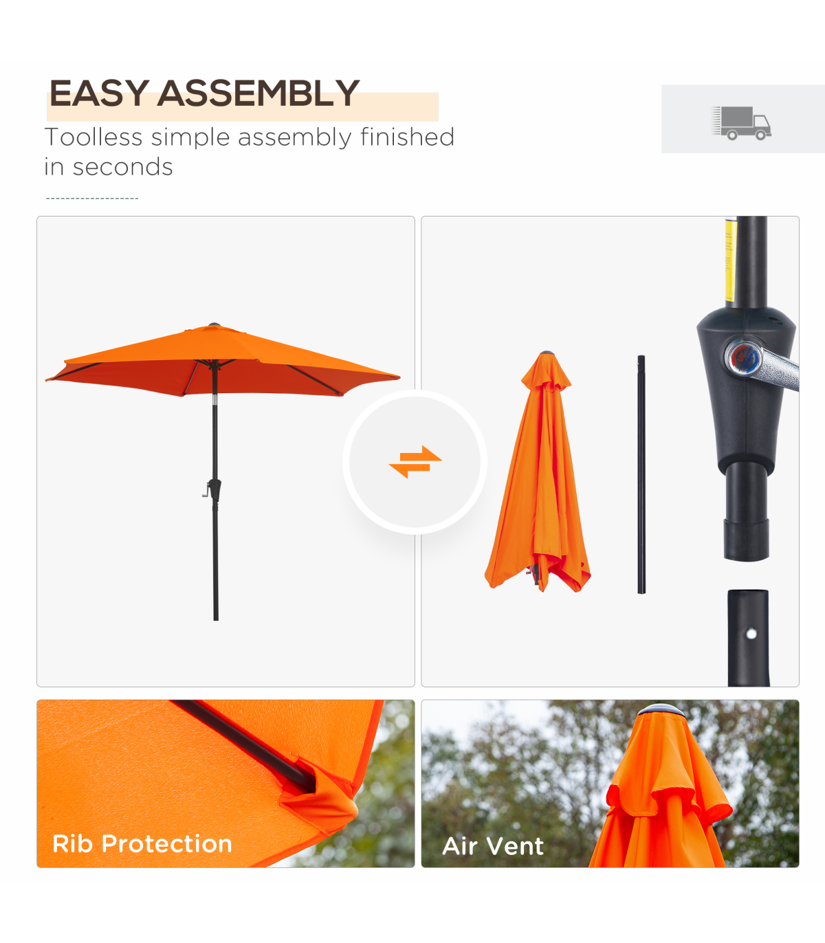 - • 1.5-inch Rust resistant aluminum pole with 6 rib frame support a UV resistant polyester canopy