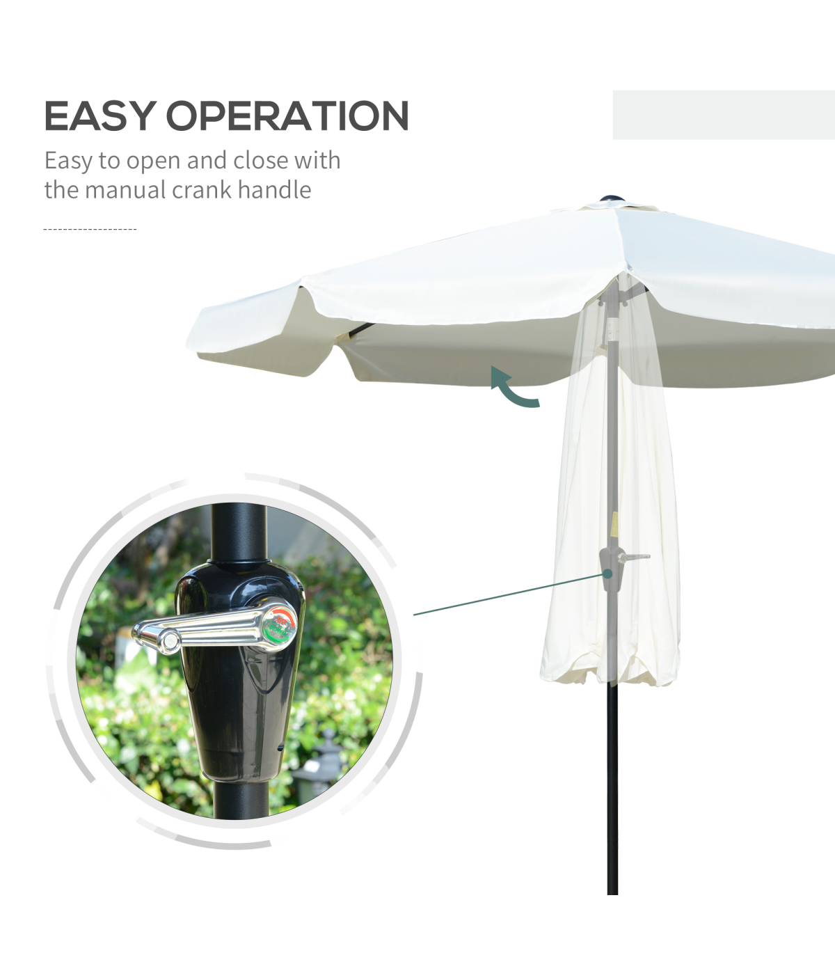 - • Crank handle to quickly open and close the canopy