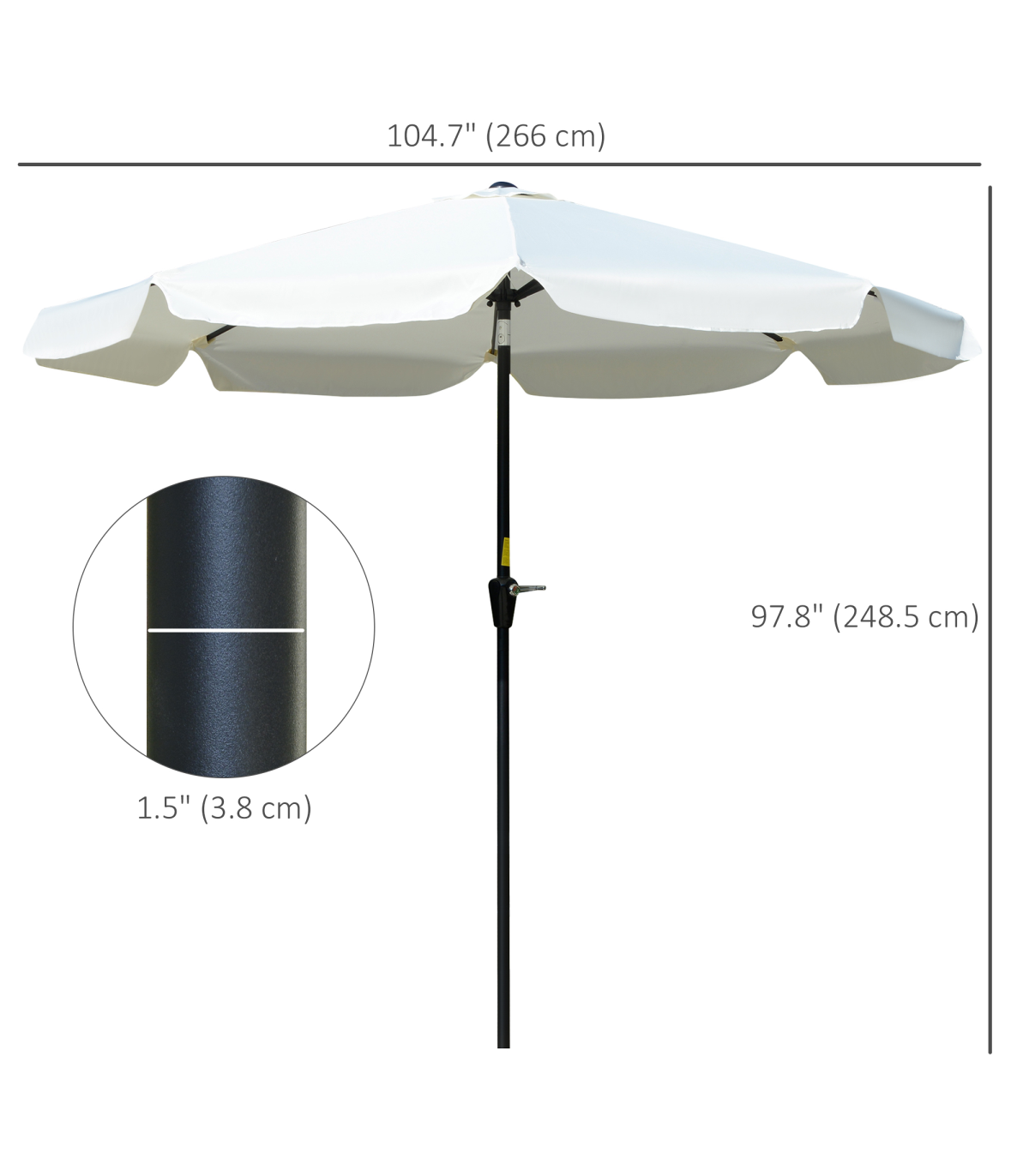 - • Umbrella Pole Diameter: 1.5" (38mm)