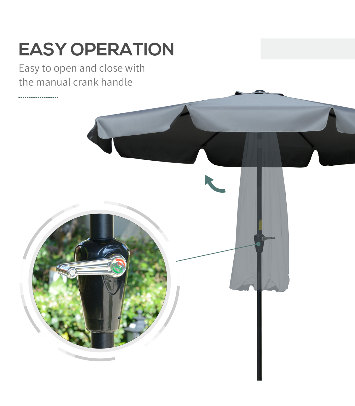 - • Crank handle to quickly open and close the canopy
